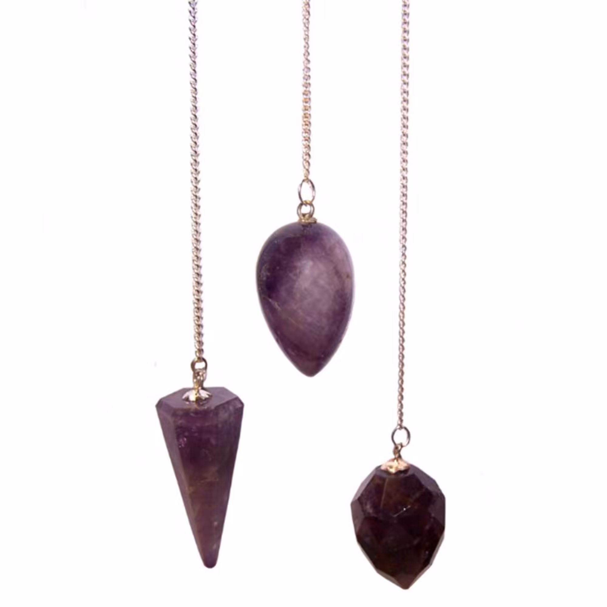 High-quality gemstone pendulums in a variety of stones. Each one is attached to a chain approx 170mm long with a gemstone bead at the end.