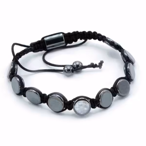 Made from magnetic hematite beads, this bracelet embodies both fashion and wellness. The macrame sliding knot allows for a comfortable, adjustable fit, making it easy to wear for all wrist sizes. The shamballa design is inspired by traditional Buddhist symbols, symbolizing inner peace and enlightenment.