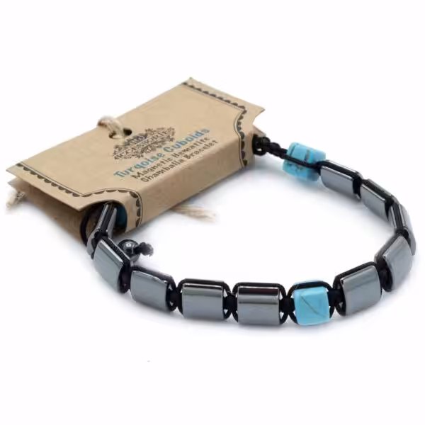 Magnetic Hematite Shamballa Bracelet – Turqoise Cuboids
