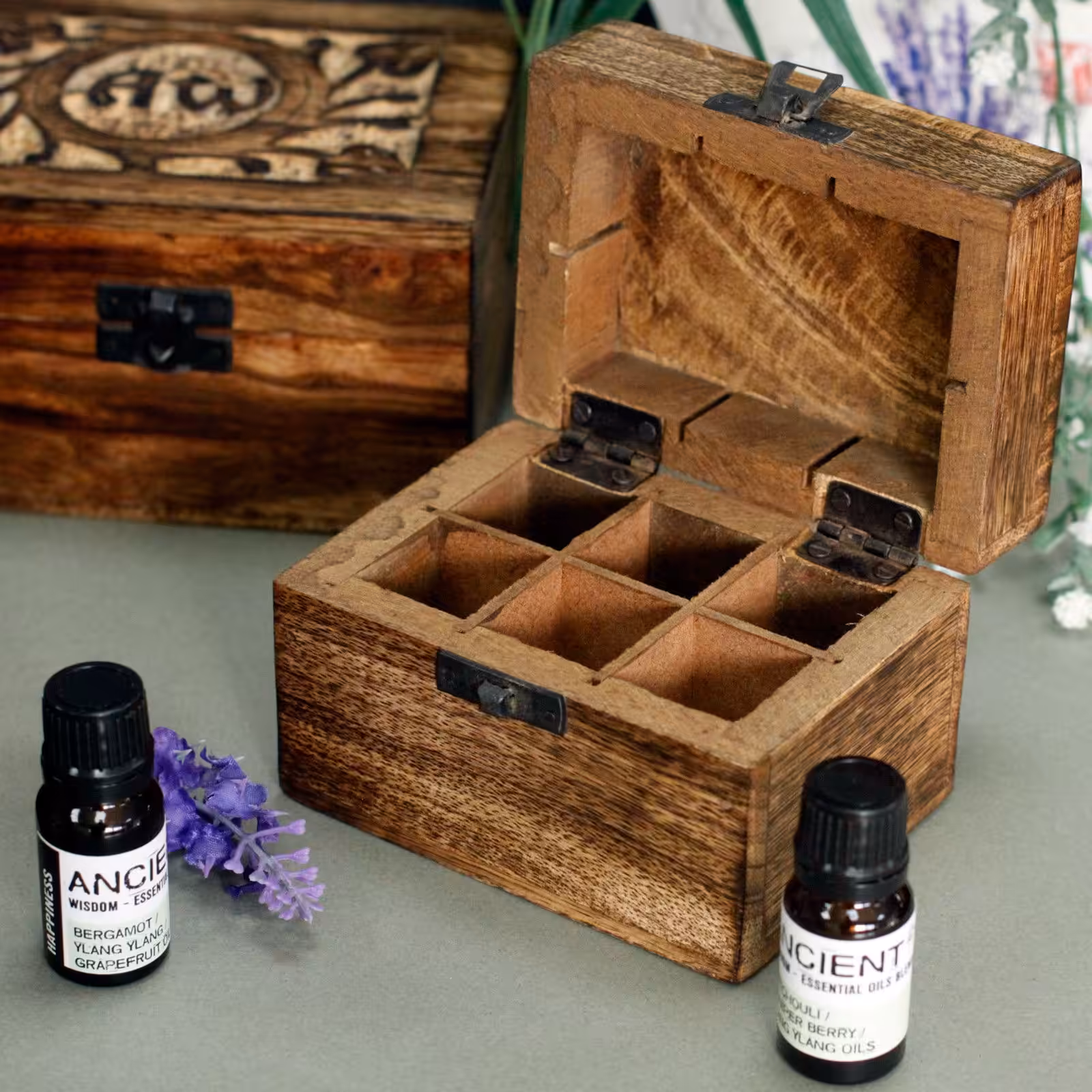 Aromatherapy Floral Carved Box, Holds 6 (10ml Bottles)