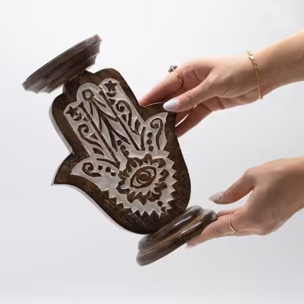 Ideal for both practical use and aesthetic appeal, the Large Hamsa Mango Wood Candle Stand complements various interior styles, from rustic to contemporary. It also makes for a thoughtful gift for housewarmings or special occasions. To maintain its beauty, simply wipe with a soft cloth and avoid harsh chemicals, ensuring this stunning piece remains a cherished part of your home for years to come.