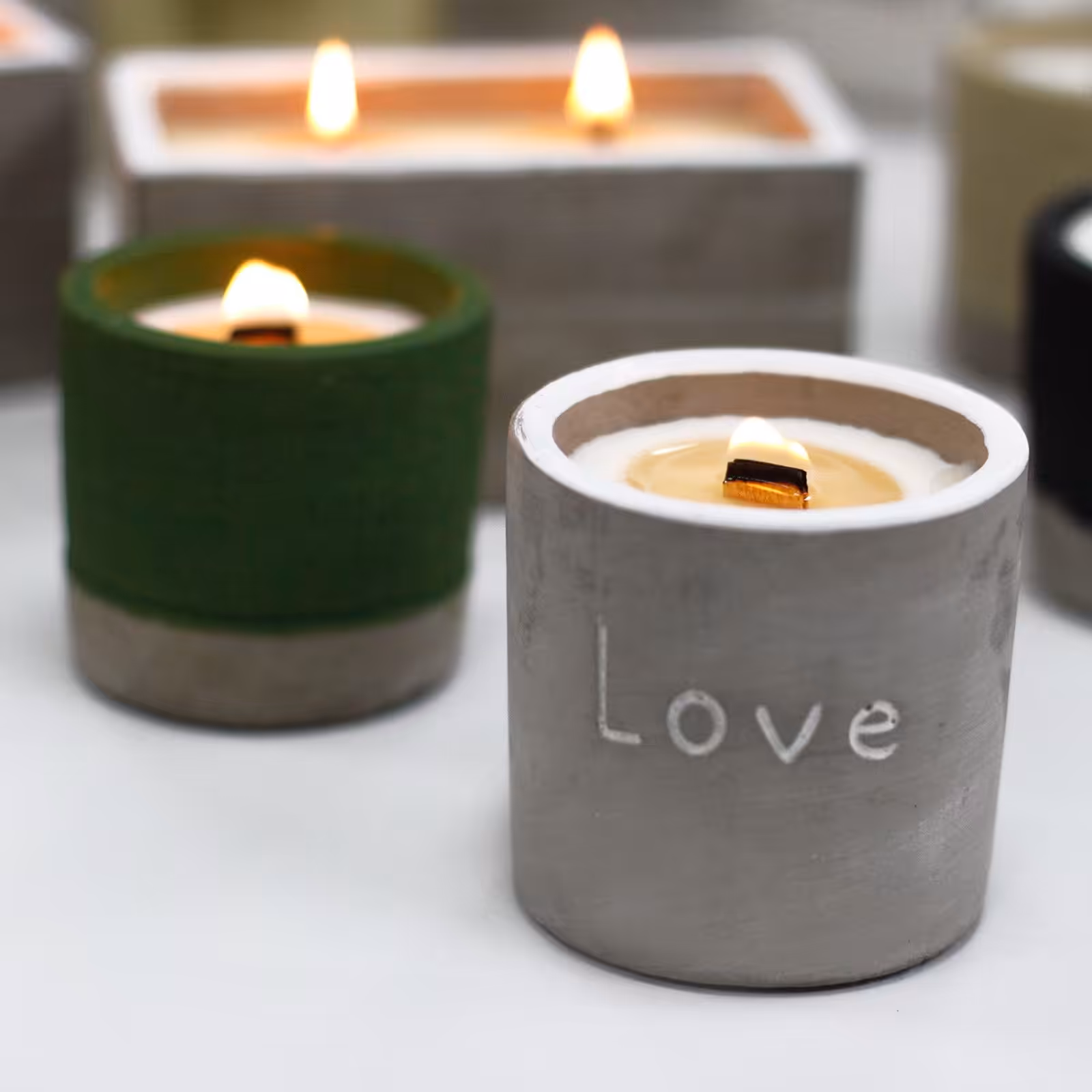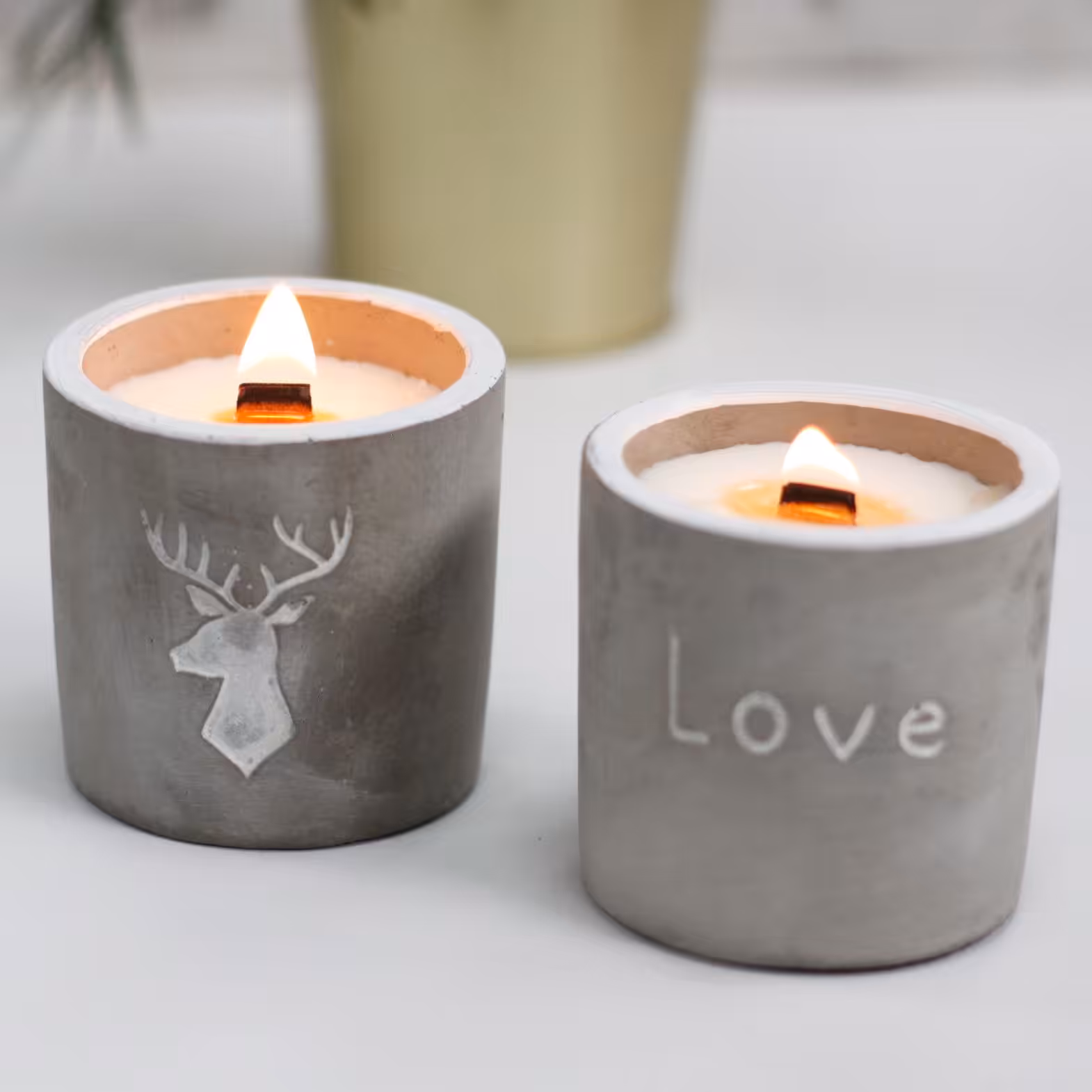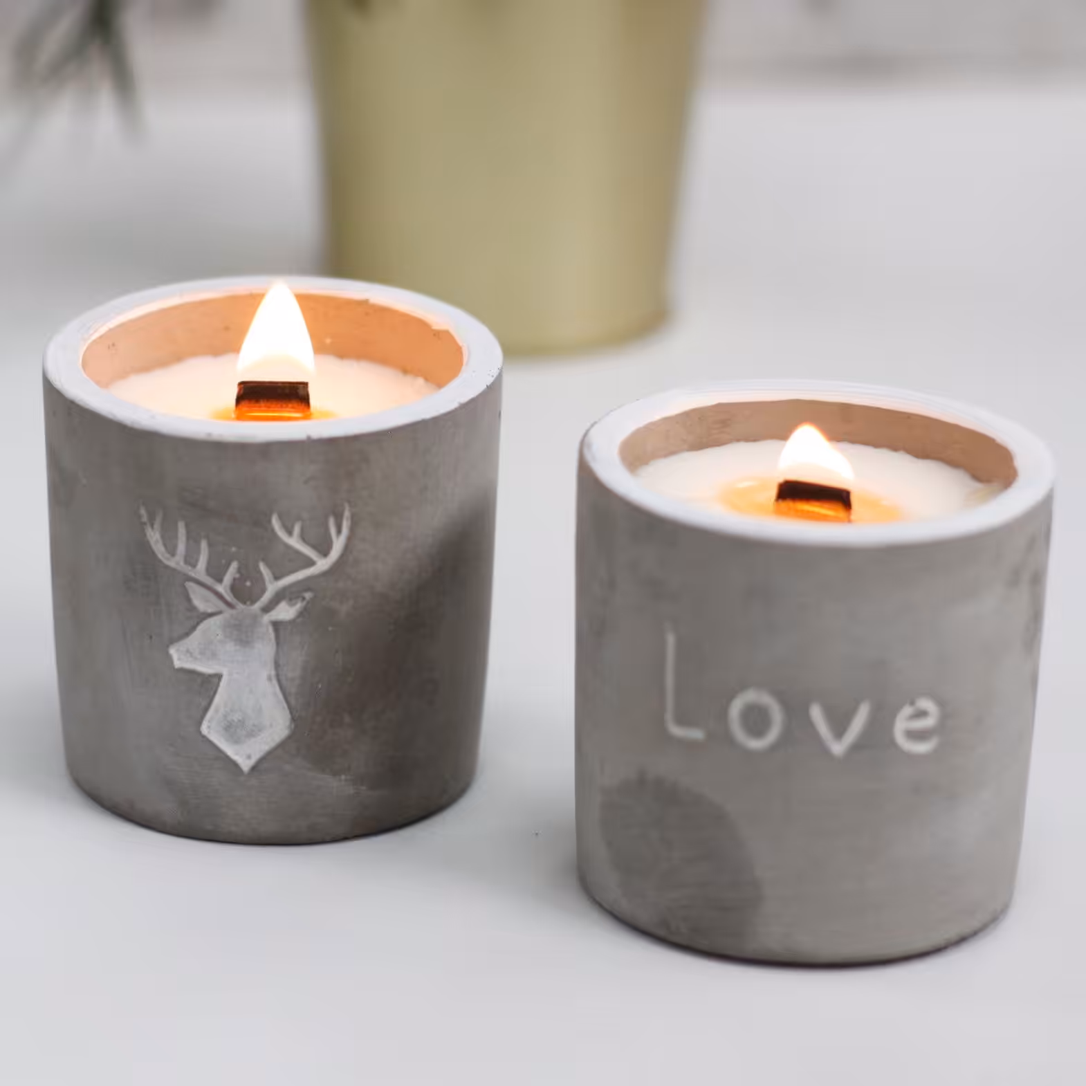 These beautiful and unique Wooden Wick Concrete Candles are one of our favourites. They have a natural and raw appearance that gives a light and loving feel. Wooden Wick Concrete Candle will fit in any style of home and will be sure to create a unique focal point and be noticed!