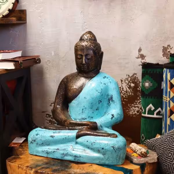 This statue features a stunning turquoise finish complemented by natural stone elements, making it not only visually appealing but also durable and weather-resistant. Its intricate details capture the essence of Buddha’s serene expression, promoting relaxation and contemplation. Whether placed in a garden, meditation room or living area, this piece serves as a daily reminder to embrace calmness and balance in your life.