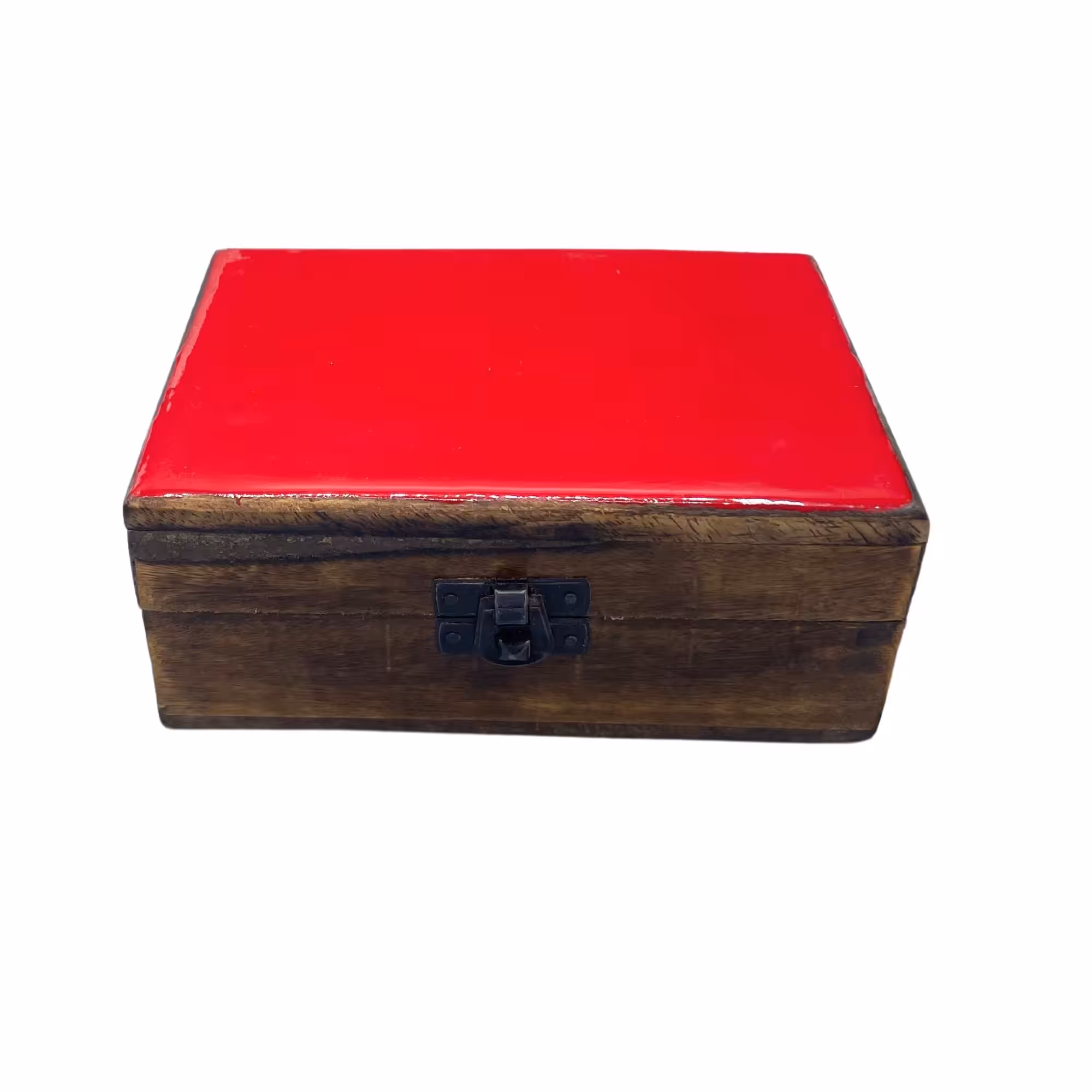 Medium Ceramic Glazed Wood Box – 15x10x6cm – Red