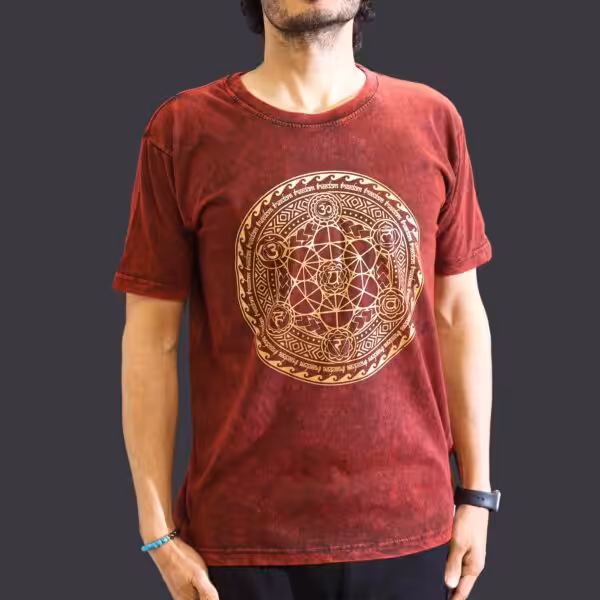 The Medium Stone Washed T-Shirt – Chakra in Maroon is a perfect blend of comfort and style, making it an essential addition to your wardrobe. Part of our Stonewashed Nomad Sari T-Shirts collection, this tee showcases a unique stone-washed finish that not only enhances its aesthetic appeal but also offers a soft, lived-in feel that you will love wearing all day long.