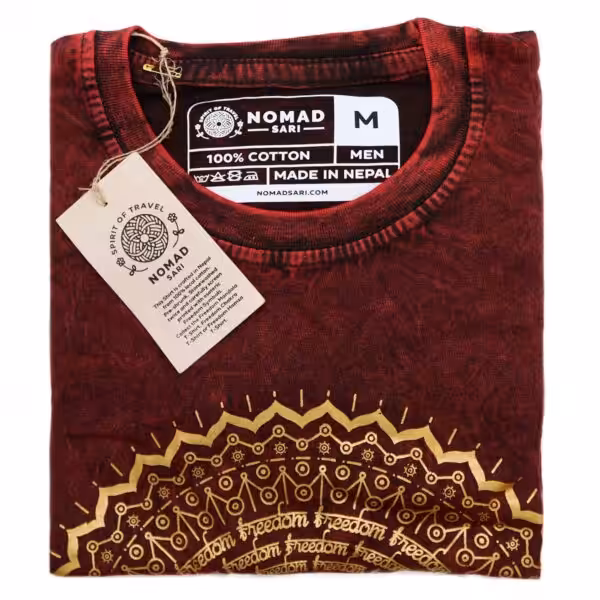 The Medium Stone Washed T-Shirt – Mandala in Maroon is a unique blend of style and comfort, perfect for those who appreciate a relaxed yet fashionable look. Crafted from high-quality materials, this t-shirt stands out in our Stonewashed Nomad Sari T-Shirts collection, offering a distinctive aesthetic that complements any casual outfit effortlessly.