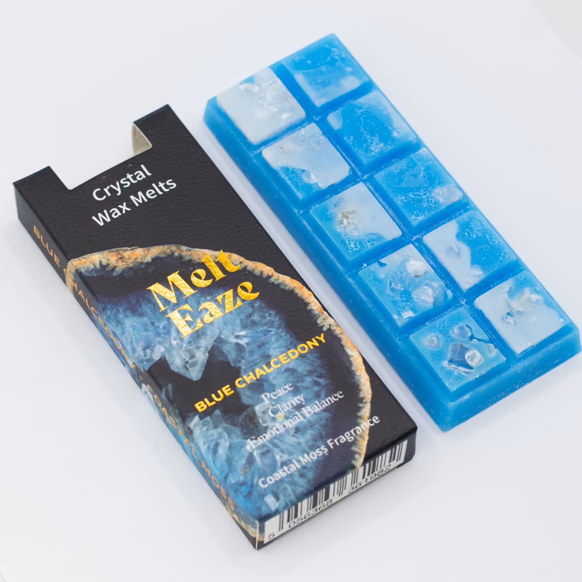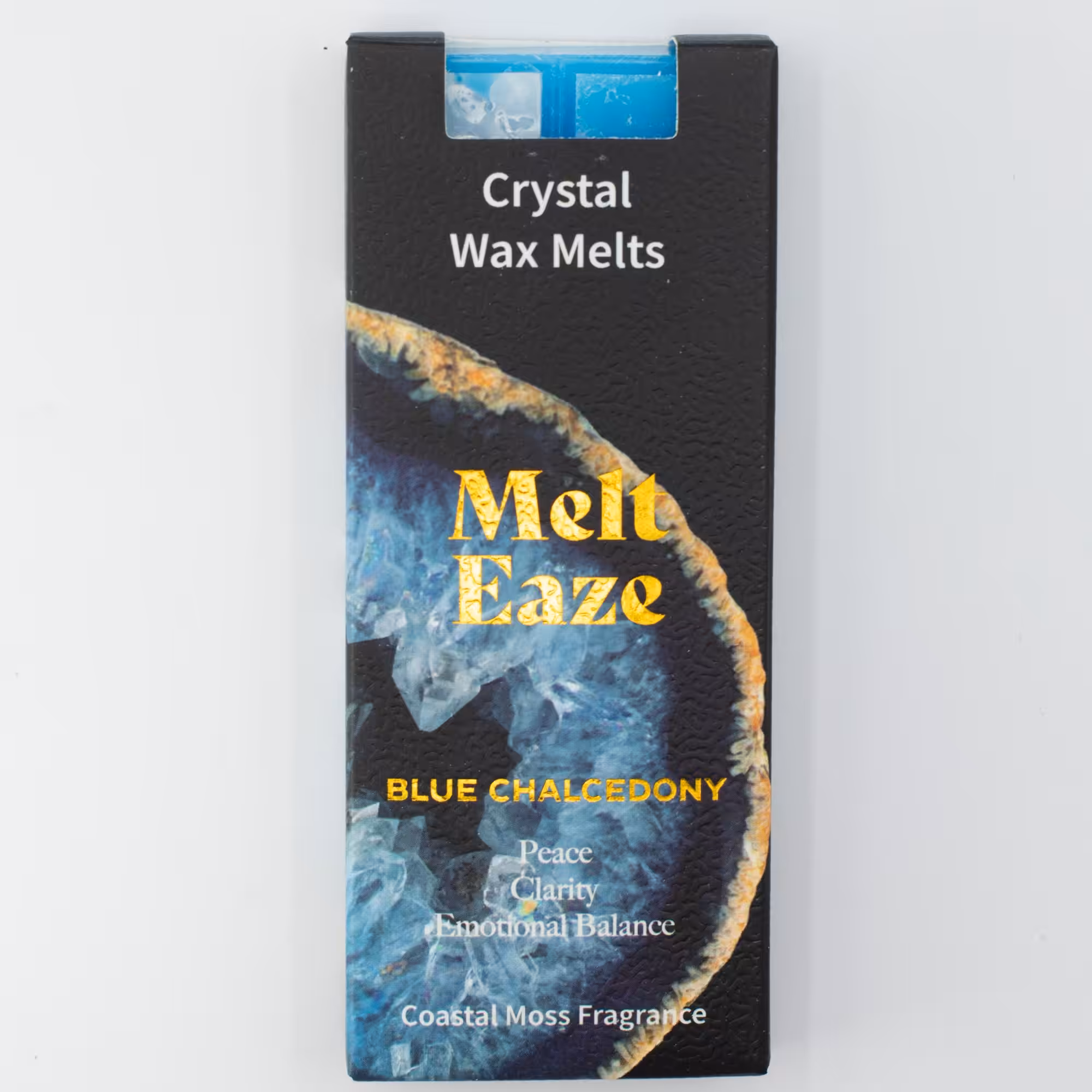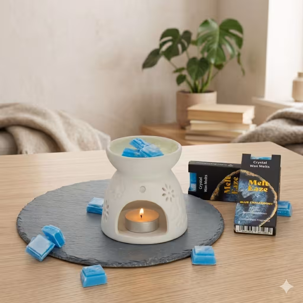 Refresh your space with MeltEaze Aquamarine Wave Wax Melts. Featuring cool blue tones and a clean coastal moss fragrance, this blend is inspired by Blue Chalcedony, often associated with peace, clarity, and emotional balance.
