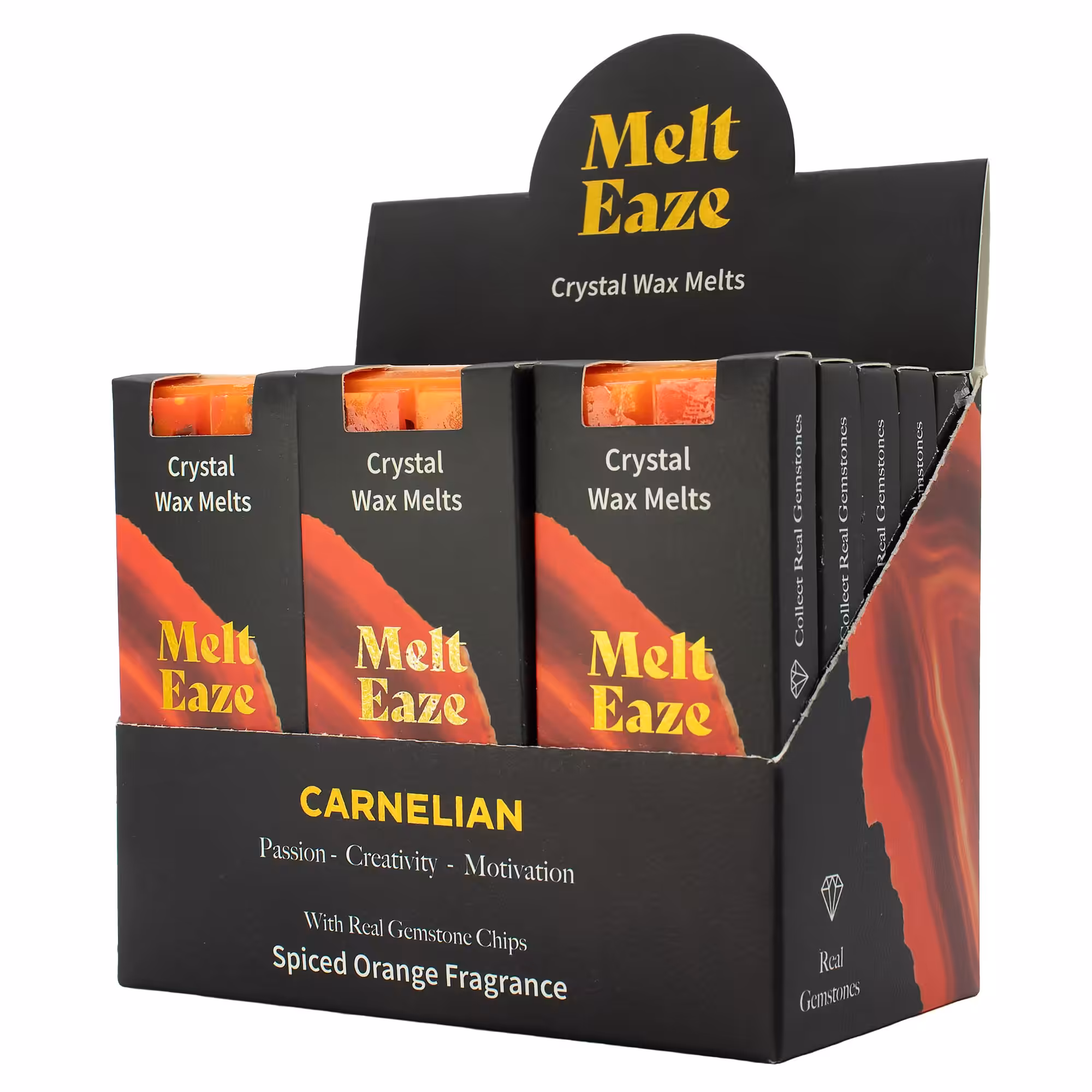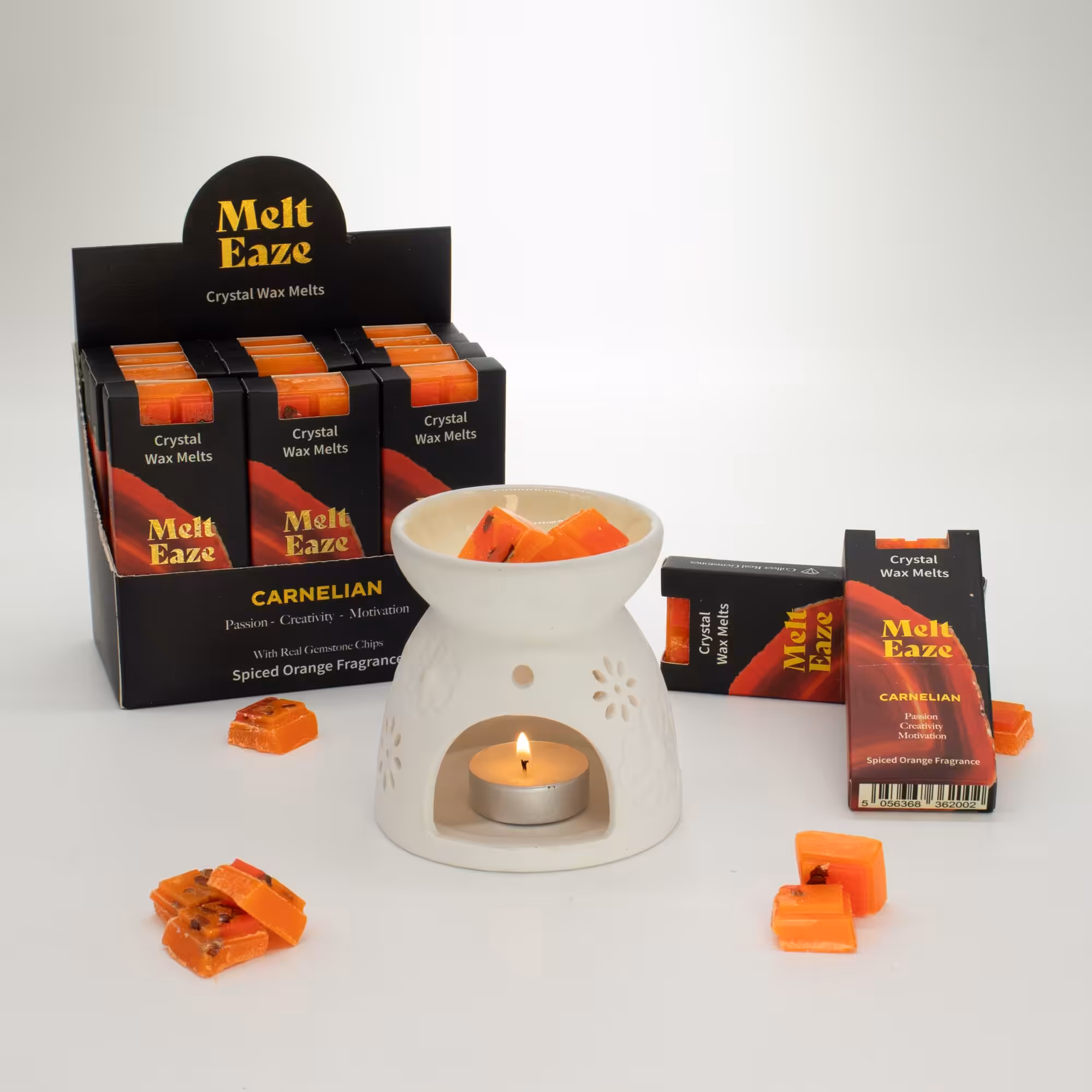 Add a warm, vibrant touch to your space with MeltEaze Carnelian Fire Wax Melts. Featuring rich orange tones and a spiced orange fragrance, this blend is inspired by Carnelian, often associated with passion, creativity, and motivation.