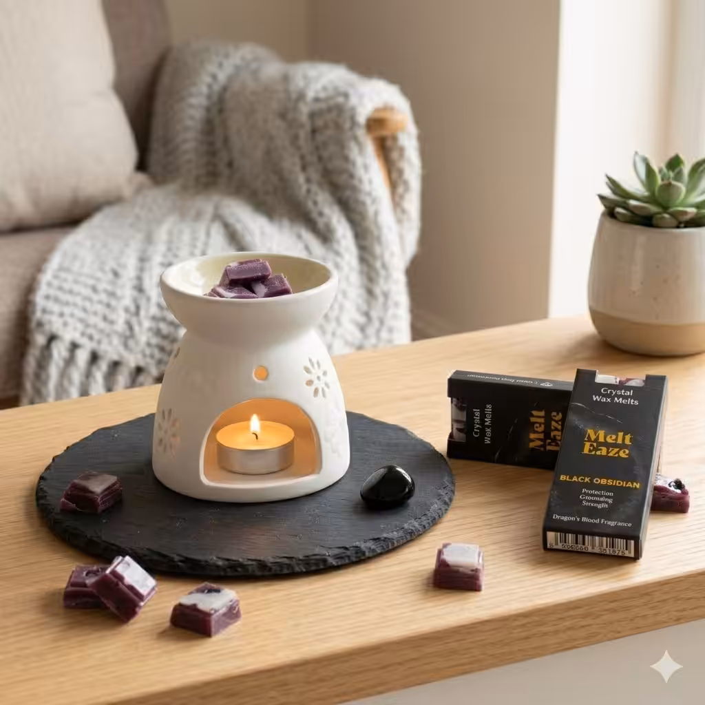 Create a deeper, more grounding atmosphere with MeltEaze Obsidian Shield Wax Melts. Featuring rich, dark tones and a bold Dragon’s Blood fragrance, this blend is inspired by Black Obsidian, often associated with protection, grounding, and inner strength.