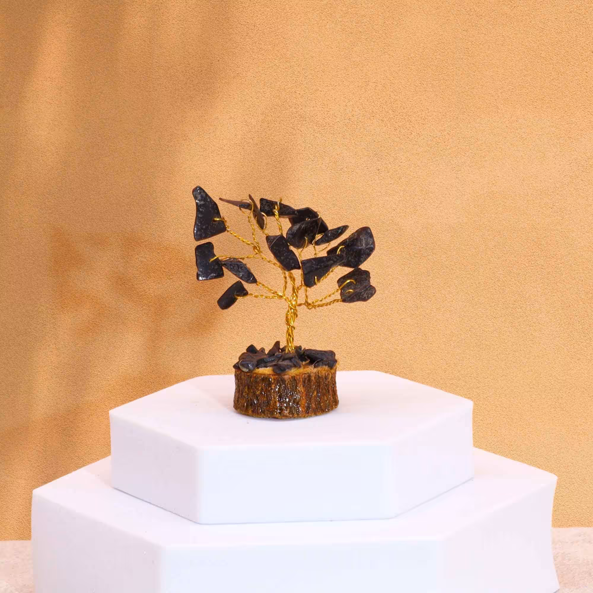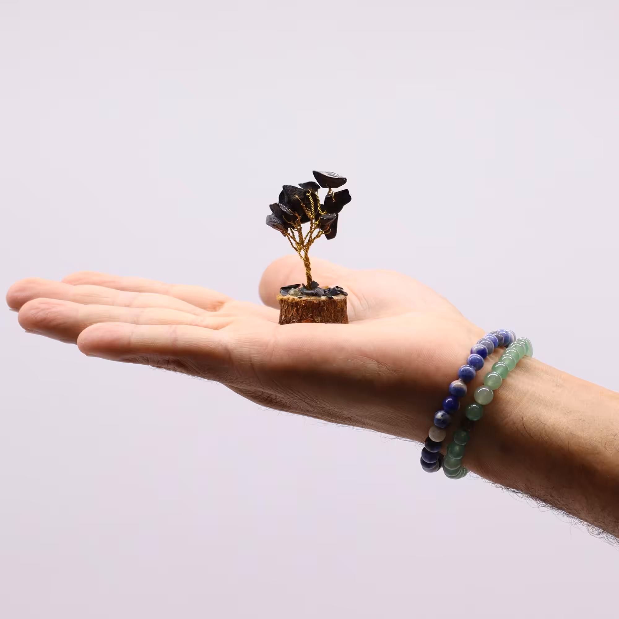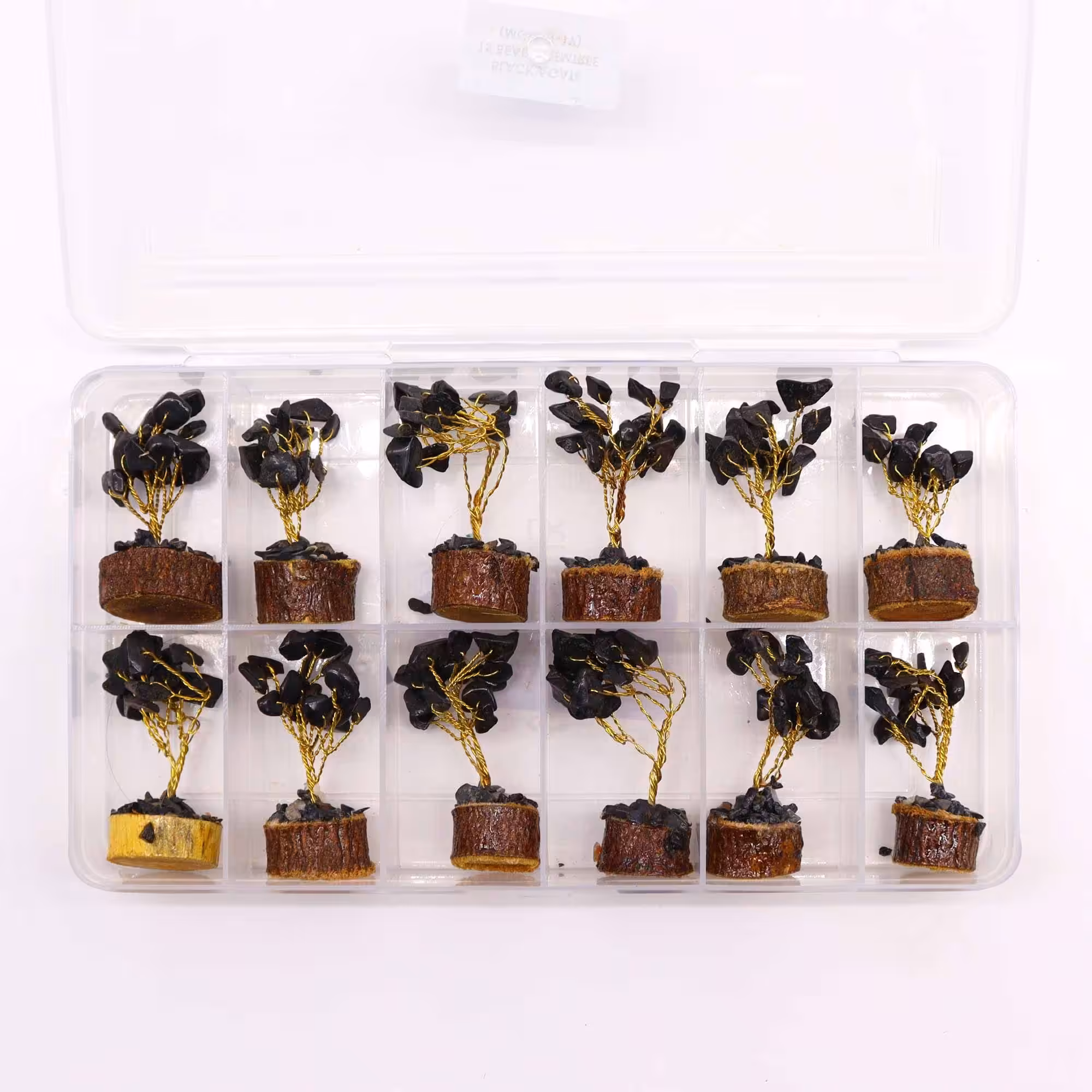 Mini Gemstone Tree On Wood Base – Black Agate (15 stones)