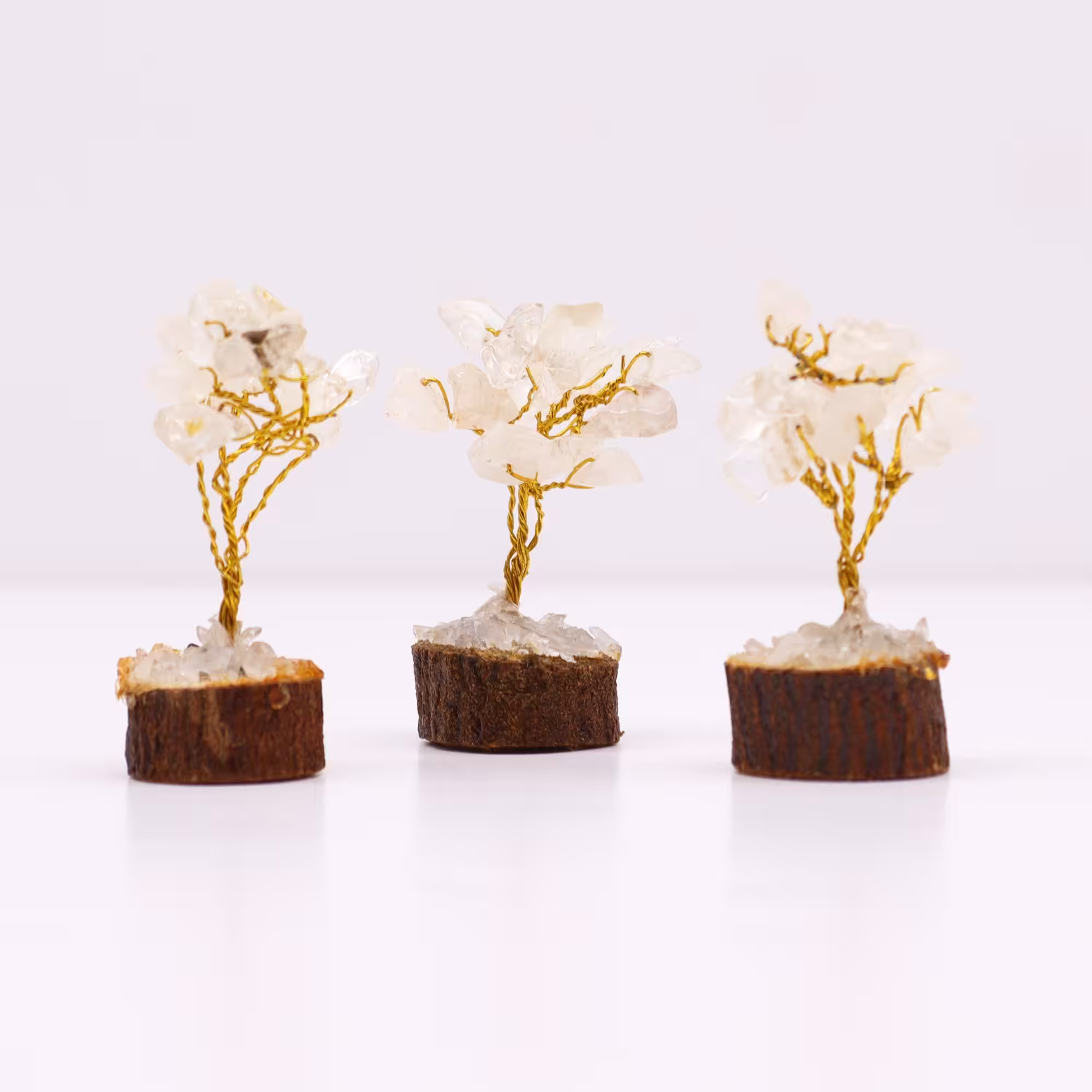 Mini Gemstone Trees on Wood Base – Rock Quartz – are designed to add a touch of sophistication and purity to any space, while harnessing the power of Rock Quartz to amplify energy, clarityand spiritual connection.