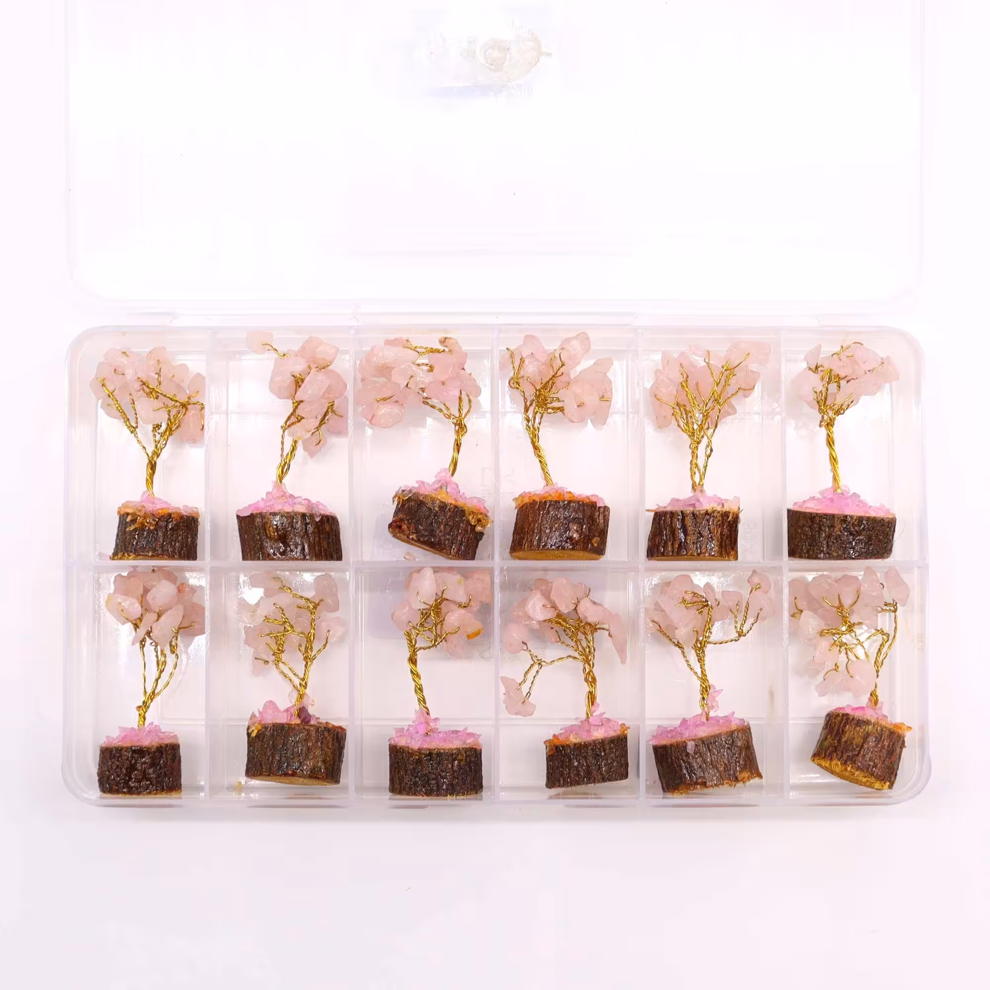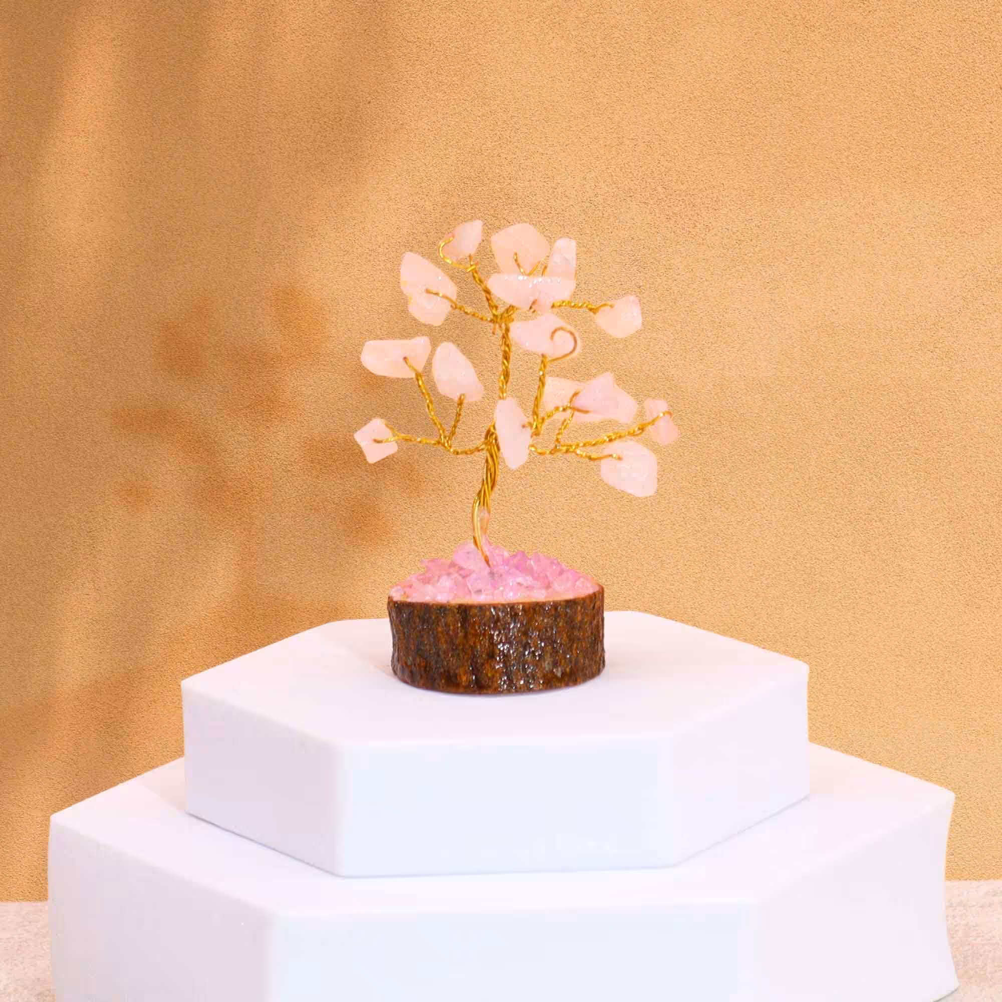 Mini Gemstone Trees on Wood Base – Rose Quartz – These gemstone trees are thoughtfully designed to bring a touch of serenity, loveand emotional healing to any space.