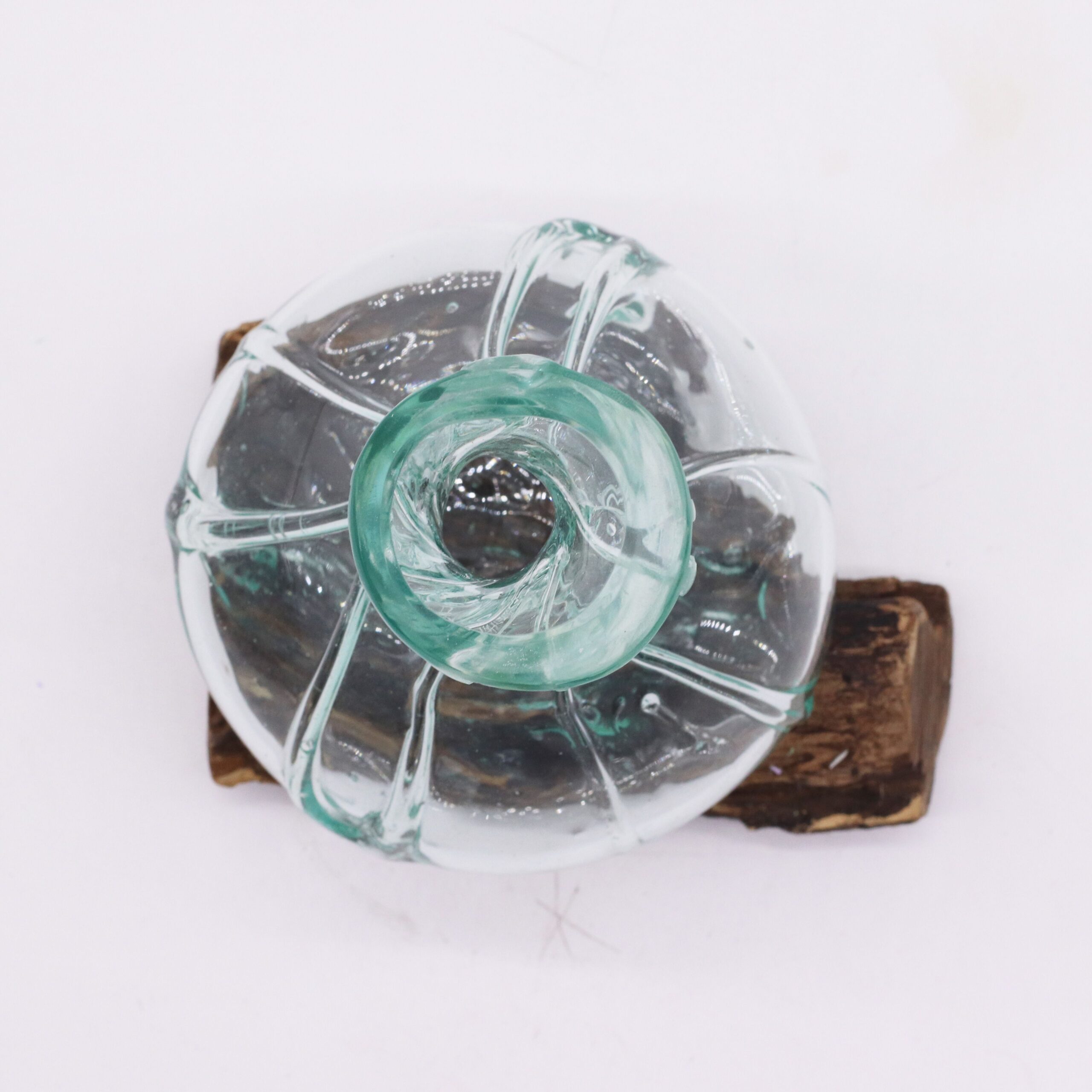 A captivating blend of craftsmanship and nature. Each decanter is hand-blown from recycled glass and shaped directly over a reclaimed Gamal wood base, creating a one-of-a-kind sculptural piece.The organic curves of the glass echo molten flow, while the warm grain of the wood adds grounding contrast