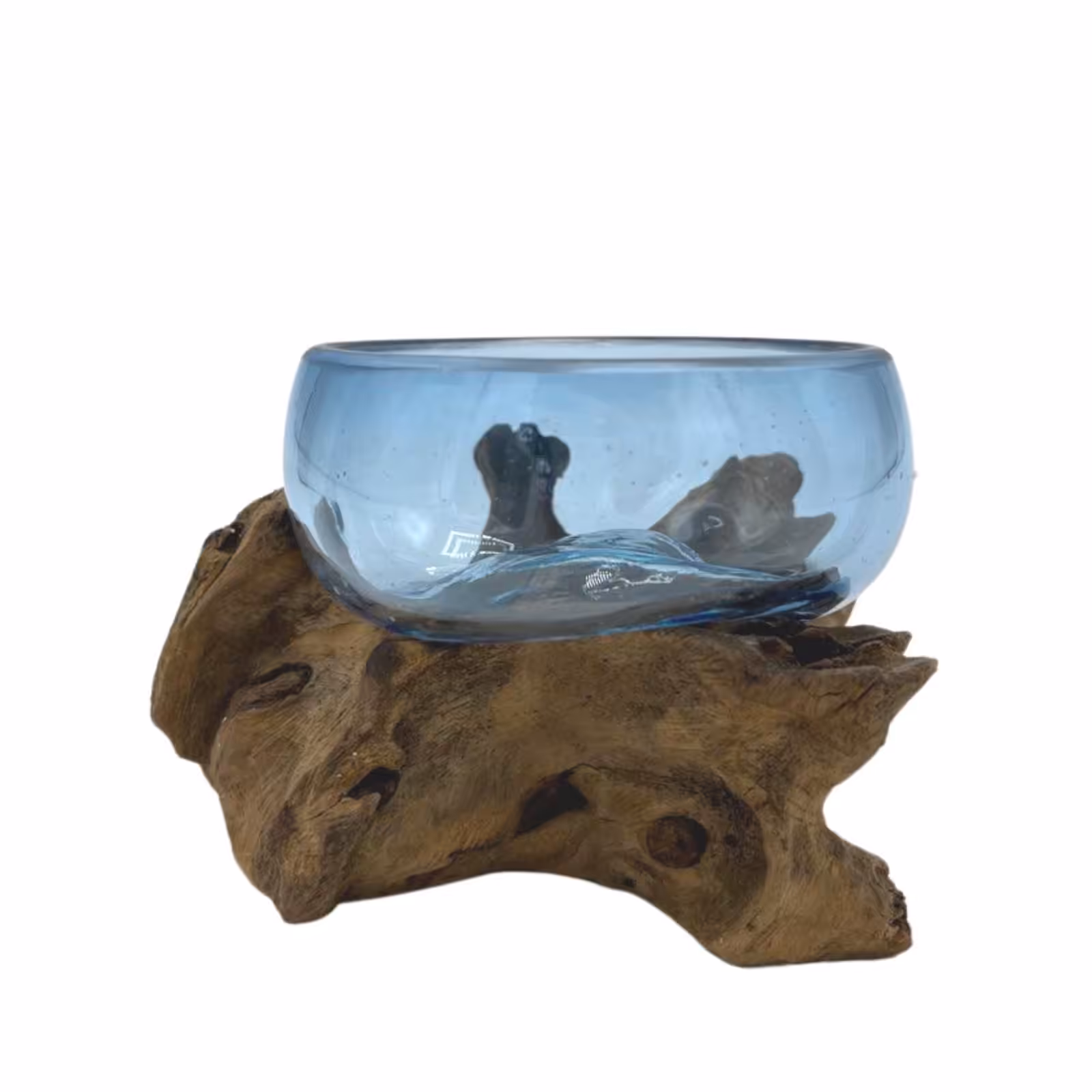 As you know anything house-plant related and natural is a major trendand this beautiful and natural product is right on the button. They are crafted by hand from recycled glass and gamal wood. These beautiful molten glass pieces bring the best of two worlds together: natural and man-made; earthy and chic; practical and spiritual.
