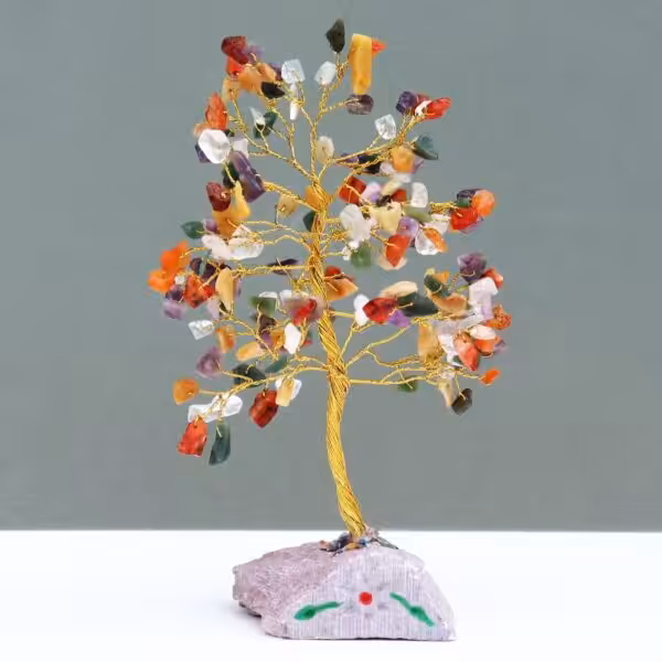 This Indian Gemstone Trees from Ancient Wisdom is handmade from real gemstones and mounted on gemstone rock bases.