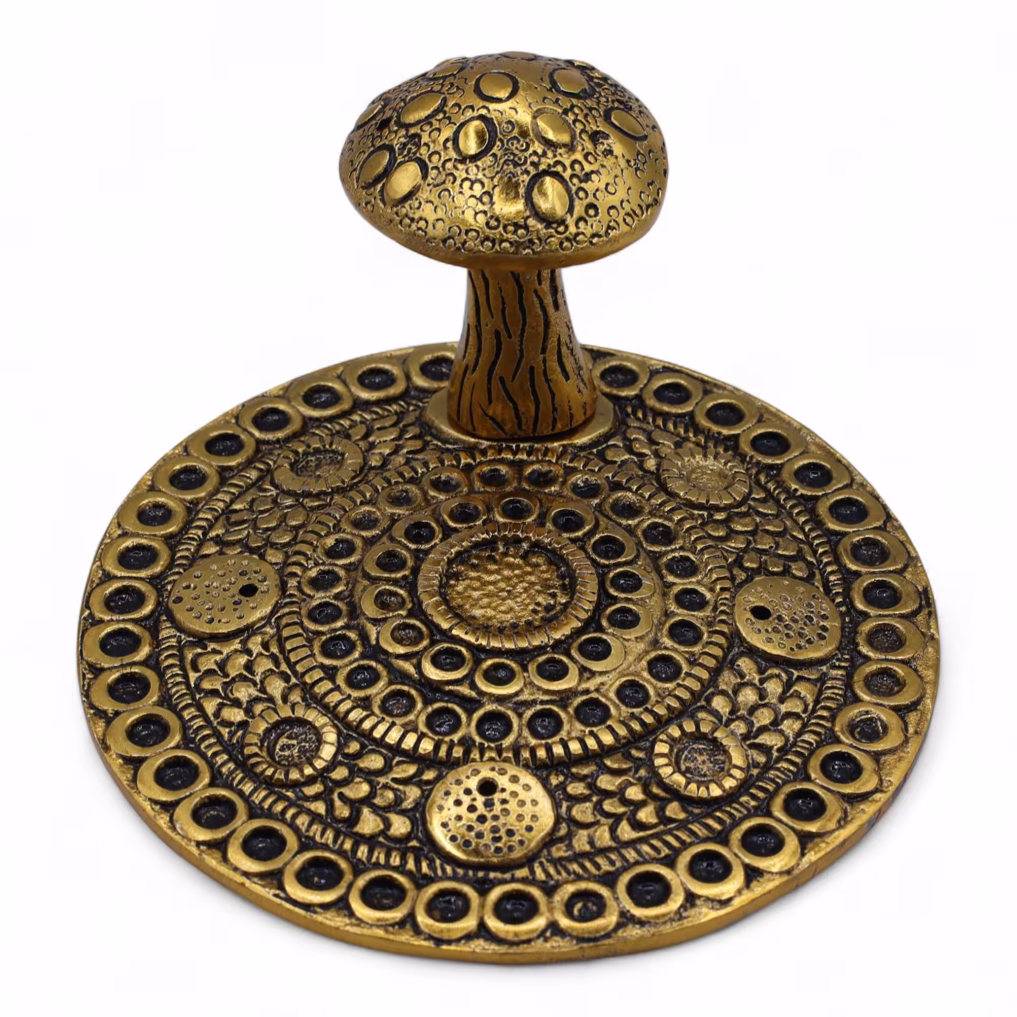 Add a touch of woodland magic to your space with this brass-effect Mushroom Incense Holder. Measuring approximately 10 cm in diameter, it’s made from aluminium with a detailed, embossed design that captures a sense of nature and mysticism.