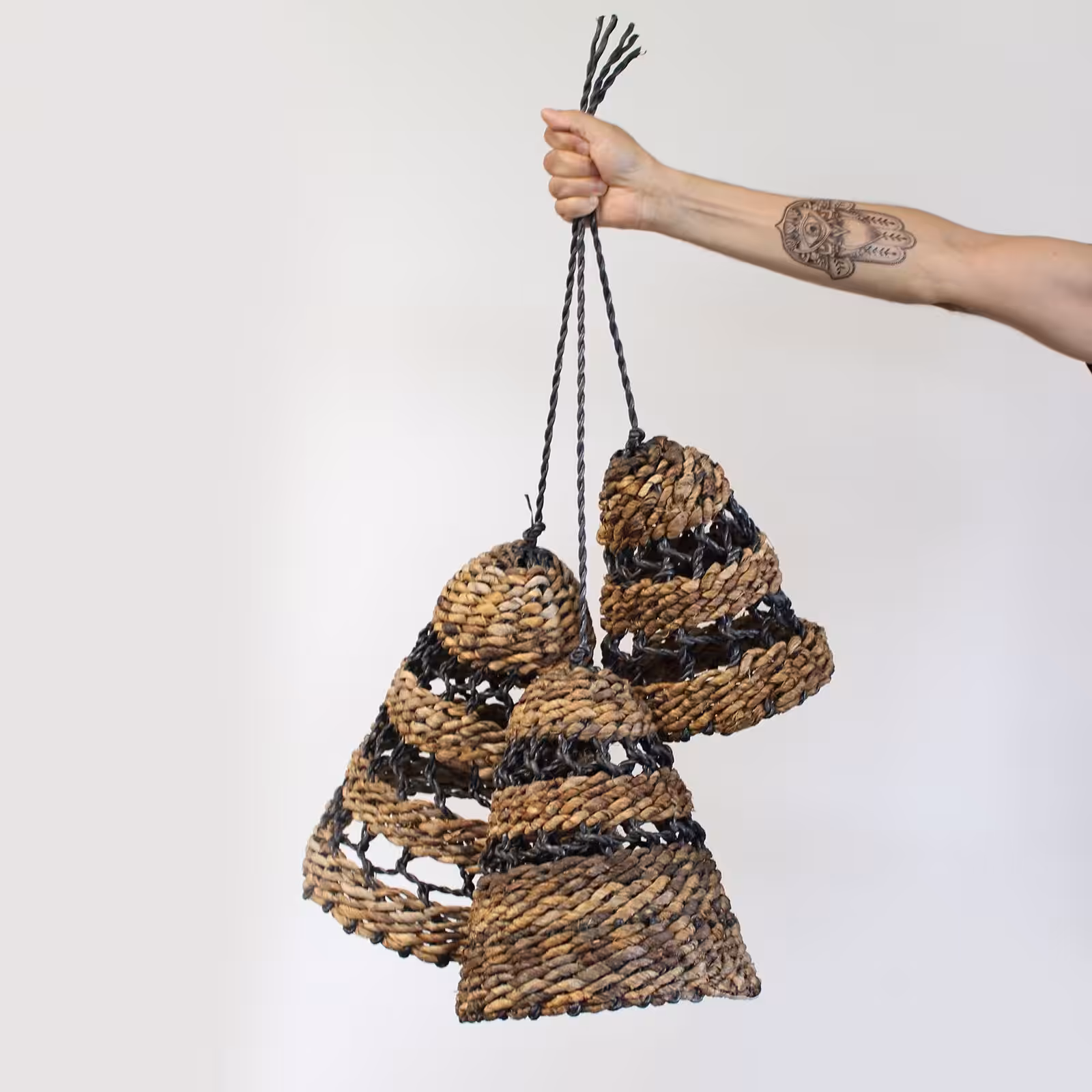 Natural Banana Leaf & Abu-Abu Raffia Lamp Shades – Set of 3