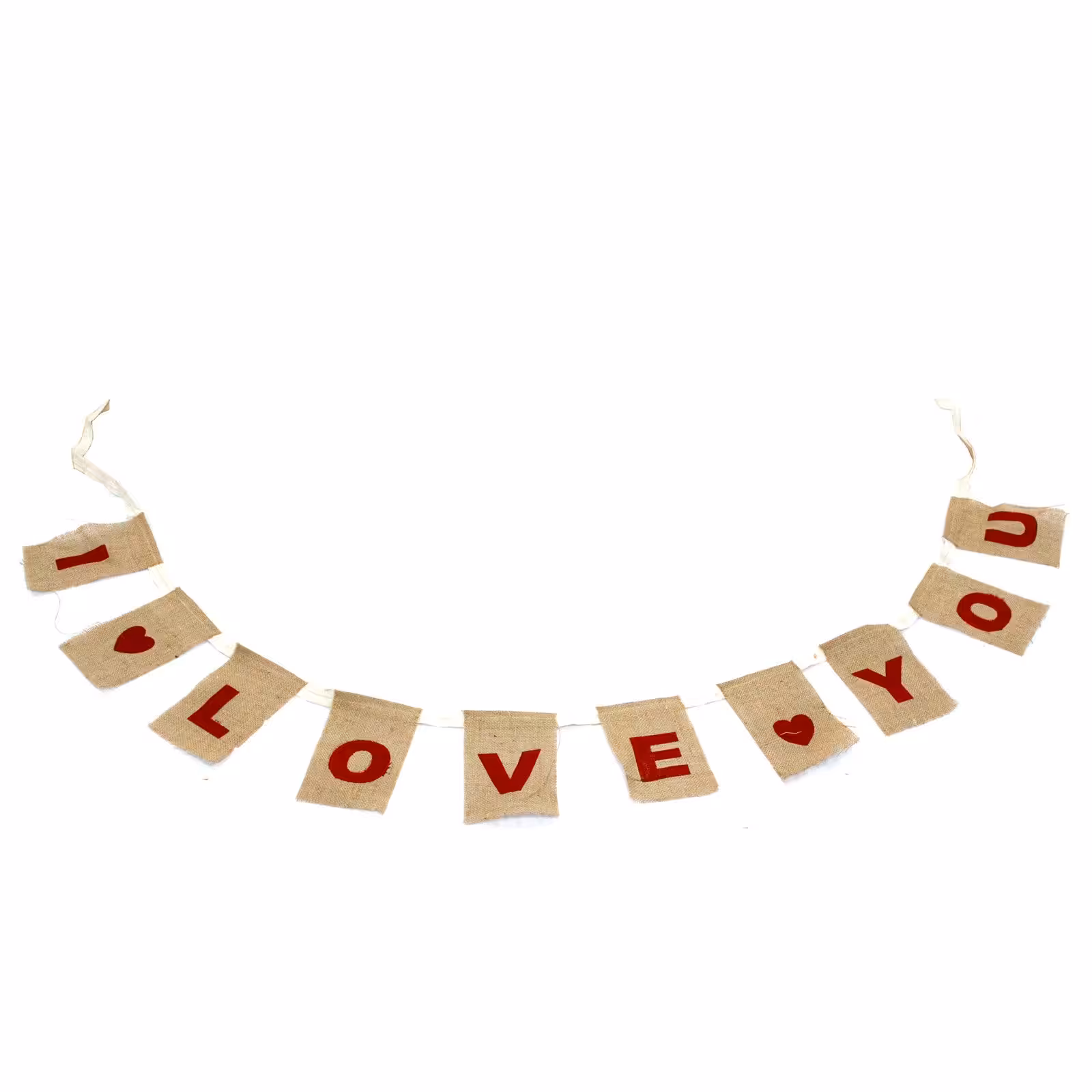 These Natural Buntings are made from ecological jute. Buntings are perfect for a variety of occasions including Birthday Parties, Weddings. Buntings are packed in cotton bags Bunting 10cmx15cm, Length 260cm