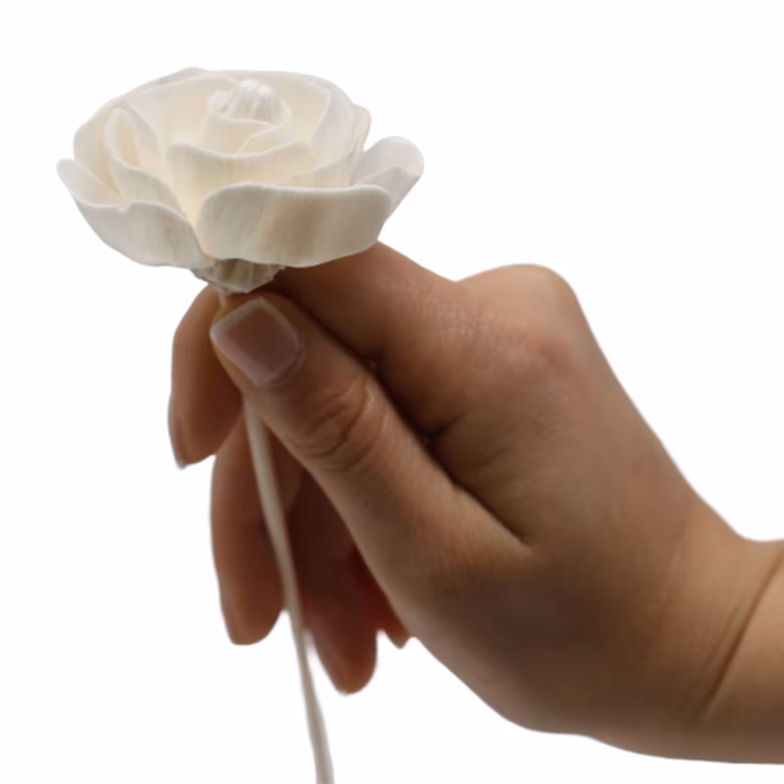 These Natural Aroma Diffuser Flowers are craft made by hand from sola wood.  Connected to a cotton string or reed stick they draw the fragrance up into the flower making the most beautiful artistic diffusers.