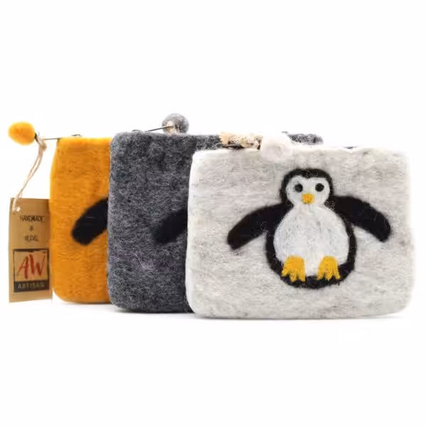 The Natural Felt Zipper Pouch in the Cute Penguin design is a delightful accessory that combines functionality with a playful aesthetic. Ideal for those who appreciate unique and eco-friendly products, this pouch is perfect for keeping your essentials organised while showcasing your personality through its charming design.