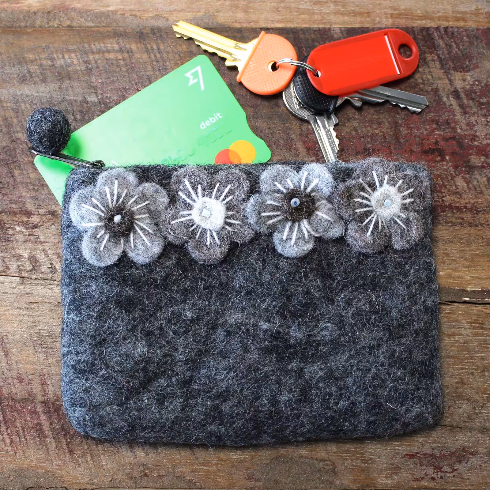 Discover the Natural Felt Zipper Pouch featuring Four Flowers, a stylish and functional accessory perfect for organising your essentials.