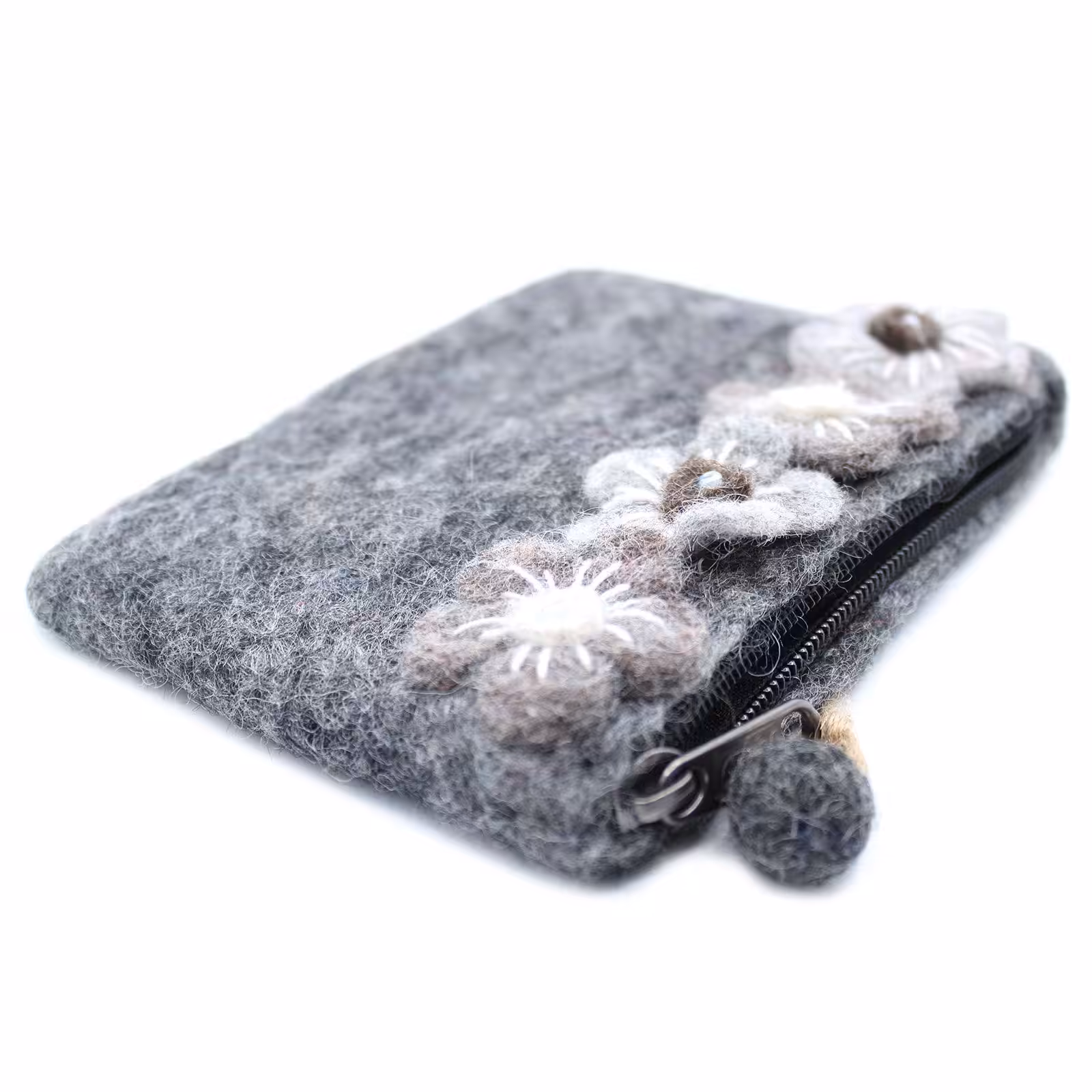 Natural Felt Zipper Pouch (asst) – Four Flowers