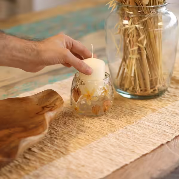 The Rosa Natural Floral Glass Straight Candle Holder is a stunning piece from our Natural Floral Glass Candle Holders collection. With its elegant design and unique floral motifs, this 8x8cm candle holder adds a touch of nature-inspired charm to your home. Whether placed on a dining table, mantelpiece or as part of a decorative centrepiece, it serves as a stylish accent that complements various interior styles.