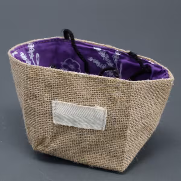Key features of this gift bag include its sturdy construction, which ensures that your gifts are well-protected while being stylishly presented. The natural jute fabric is both biodegradable and recyclable, making it a responsible alternative to conventional plastic bags. The vibrant lavender lining not only enhances its visual appeal but also adds a unique touch that is sure to impress recipients, making every gift feel extra special.