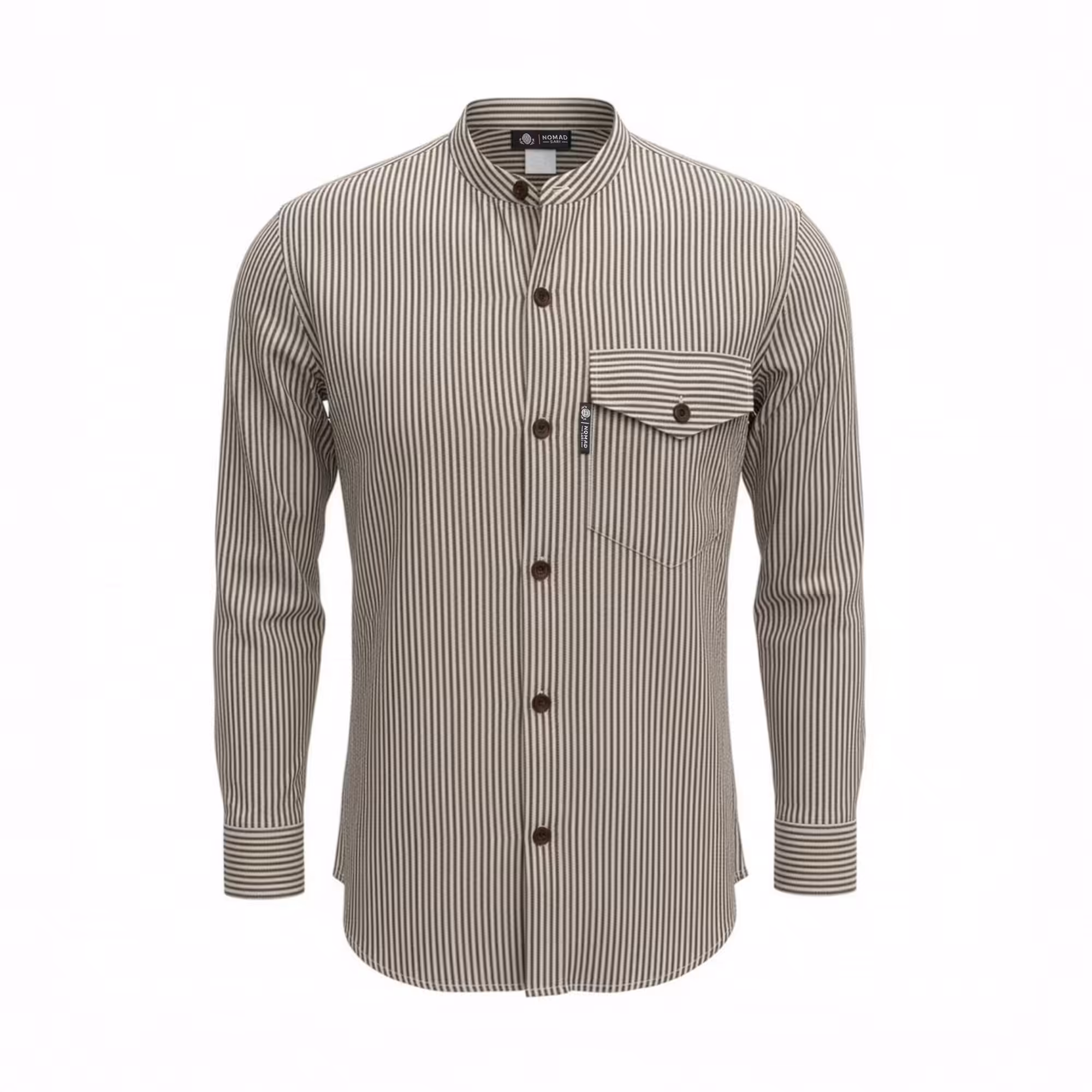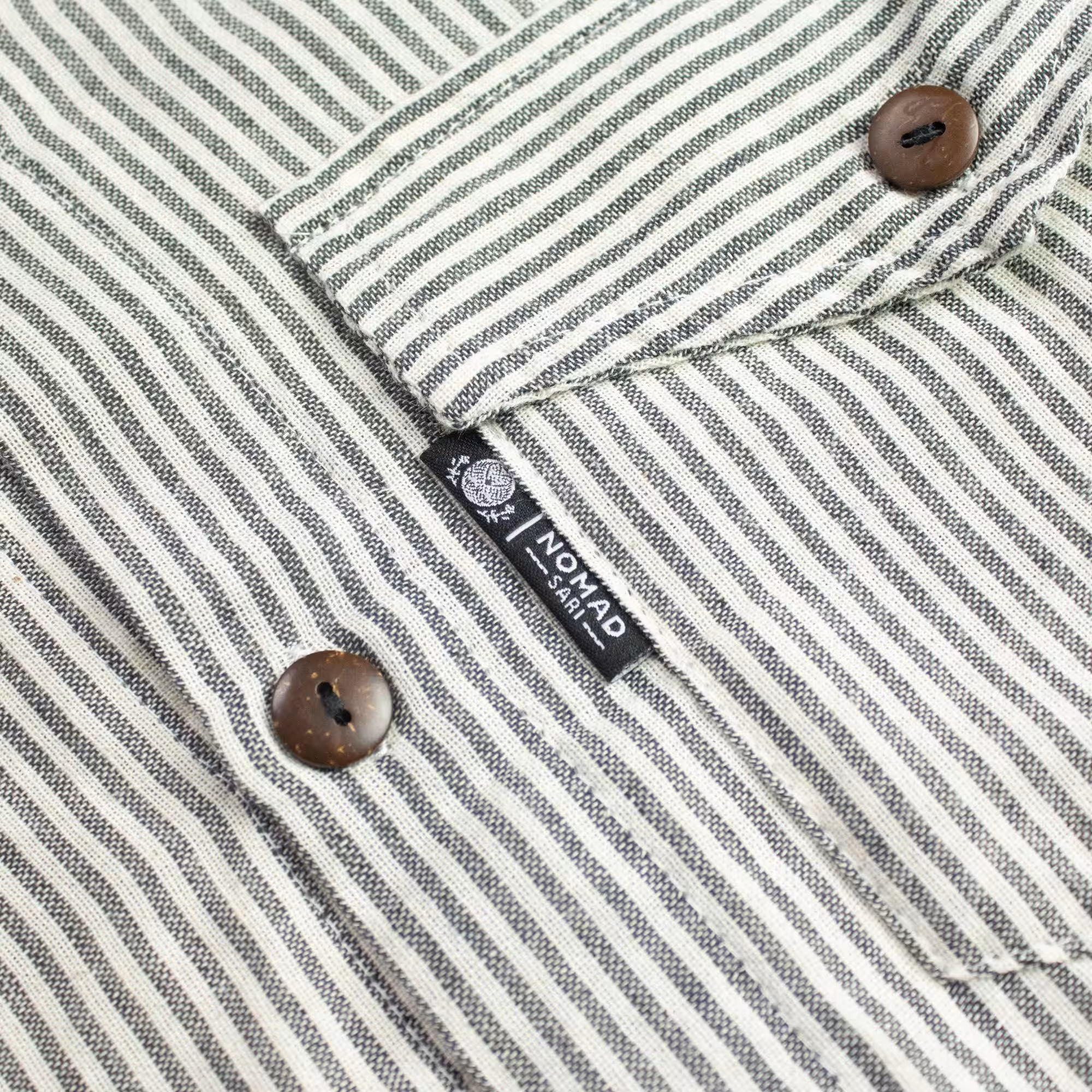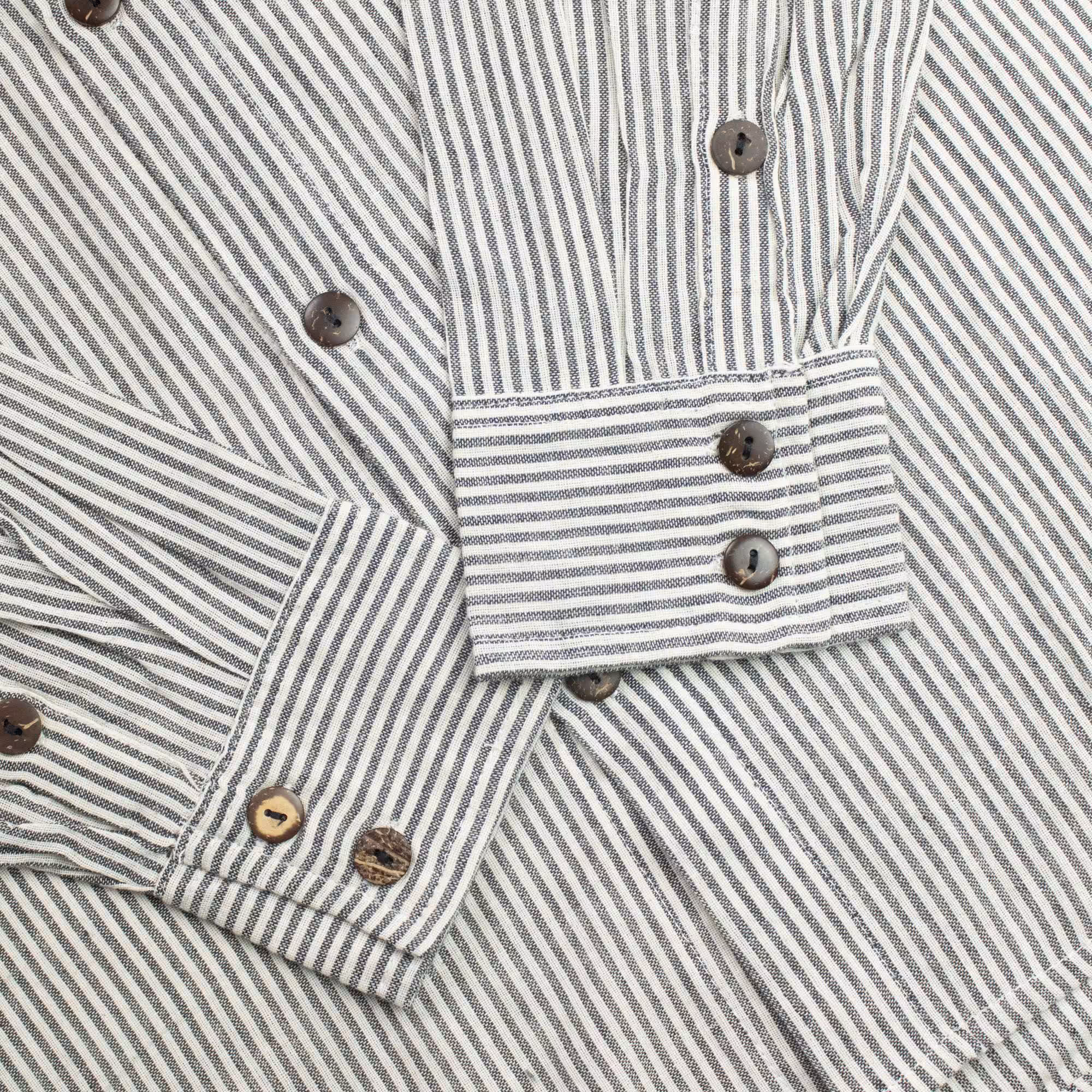 The Nomad Sari Grandad Shirt in Grey Stone brings a relaxed, understated style with its soft striped pattern and neutral tones. The collarless neckline and button front create a timeless look that feels effortless and easy to wear.