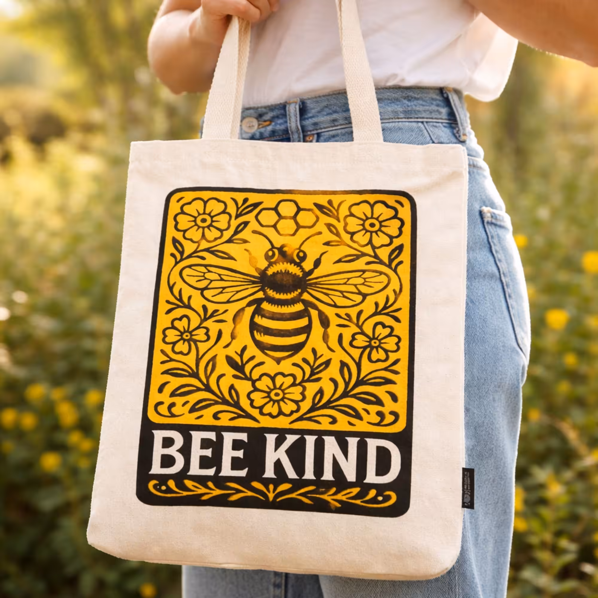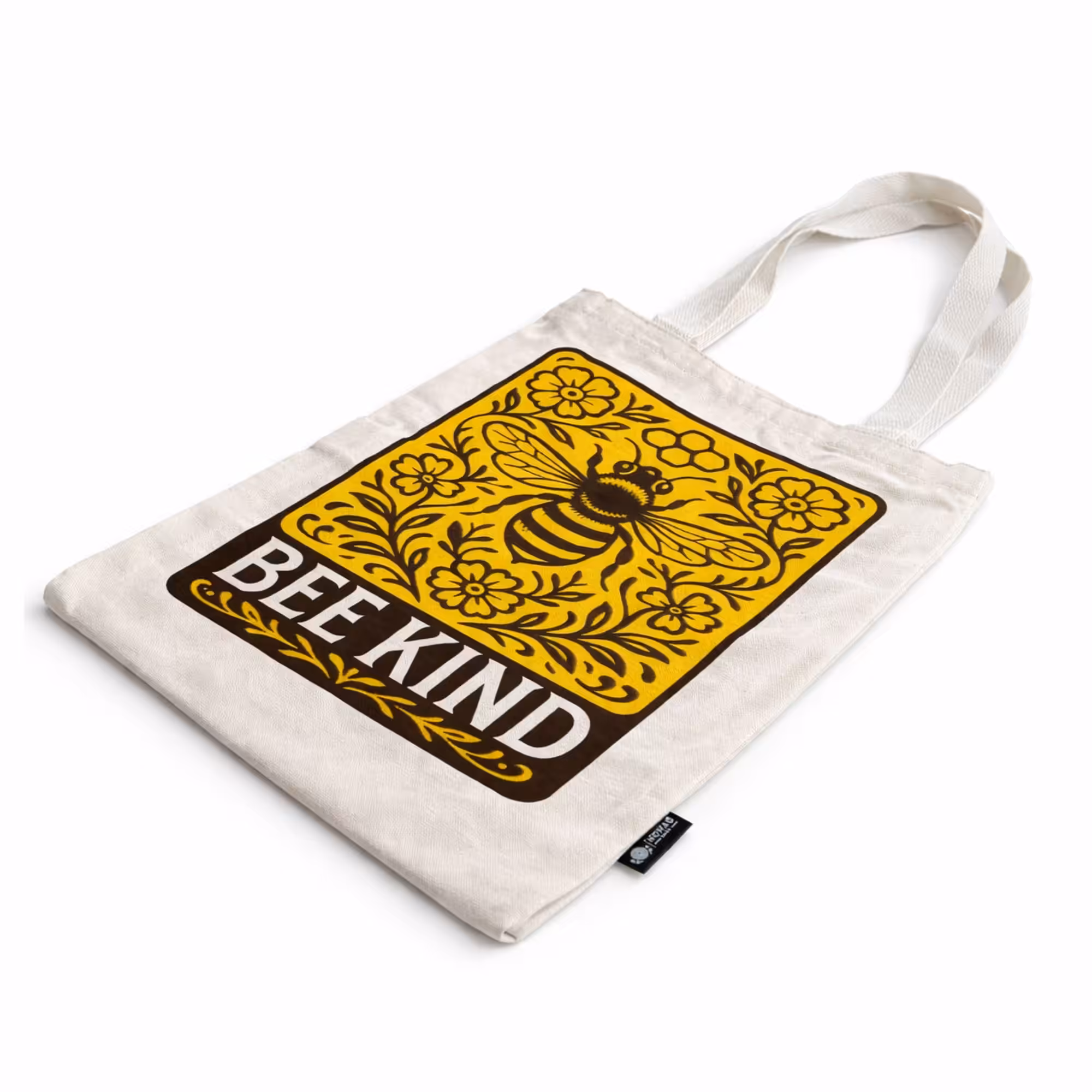 A practical everyday tote with a positive message. The Bee Kind design adds a cheerful touch, while the natural cotton keeps the look simple and easy to wear with anything. It’s the kind of bag you can use for shopping, work, or just heading out for the day.