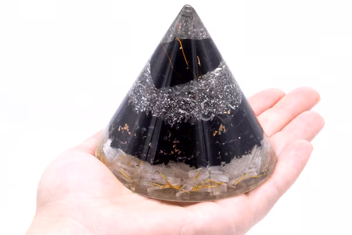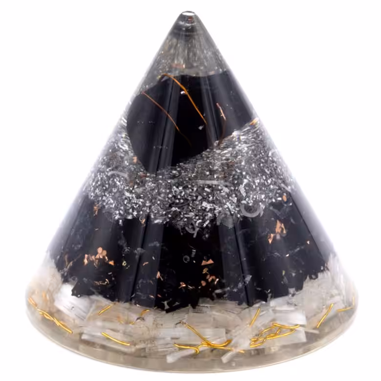 Orgonite Cone – Selenite and Black Toumaline Copper – 90 mm