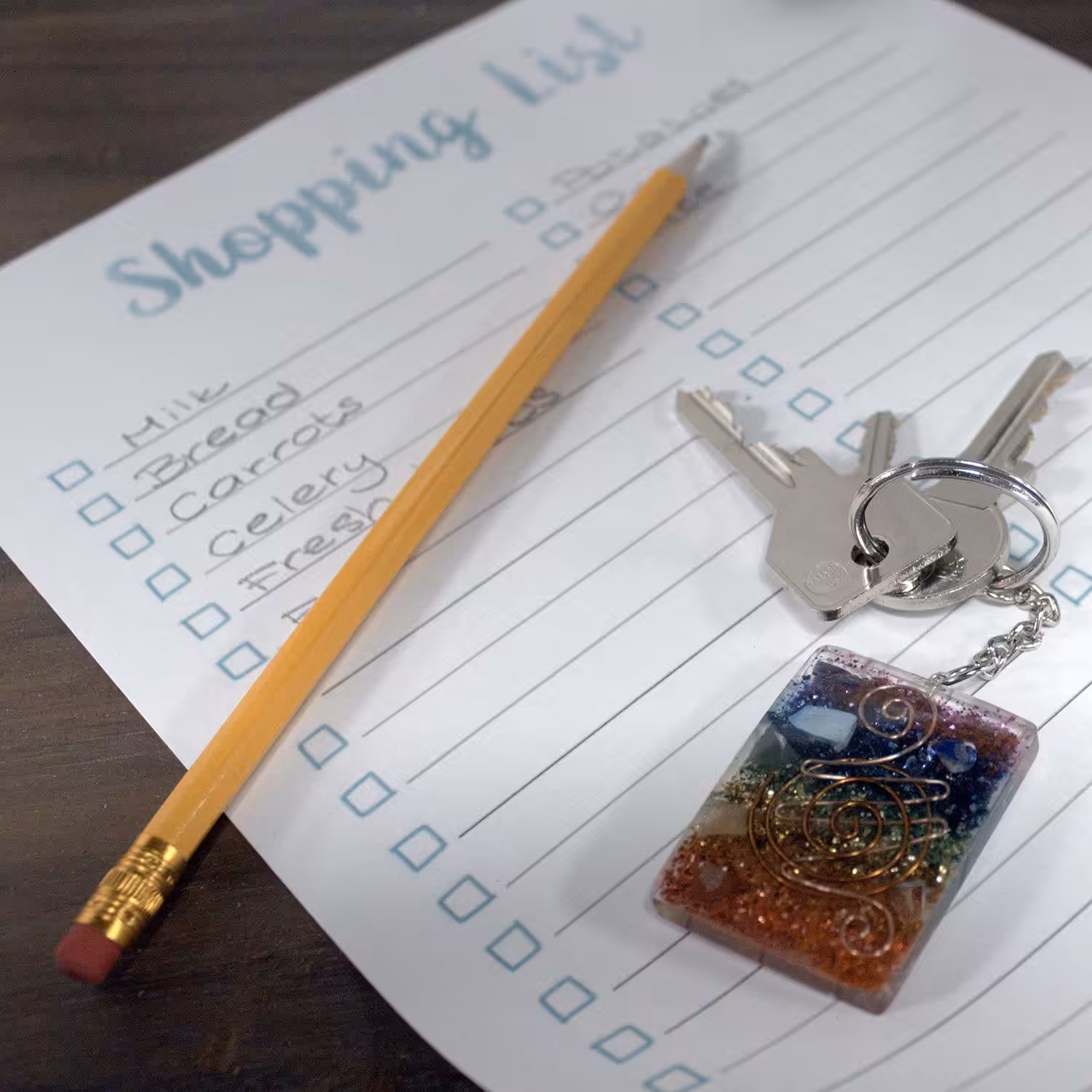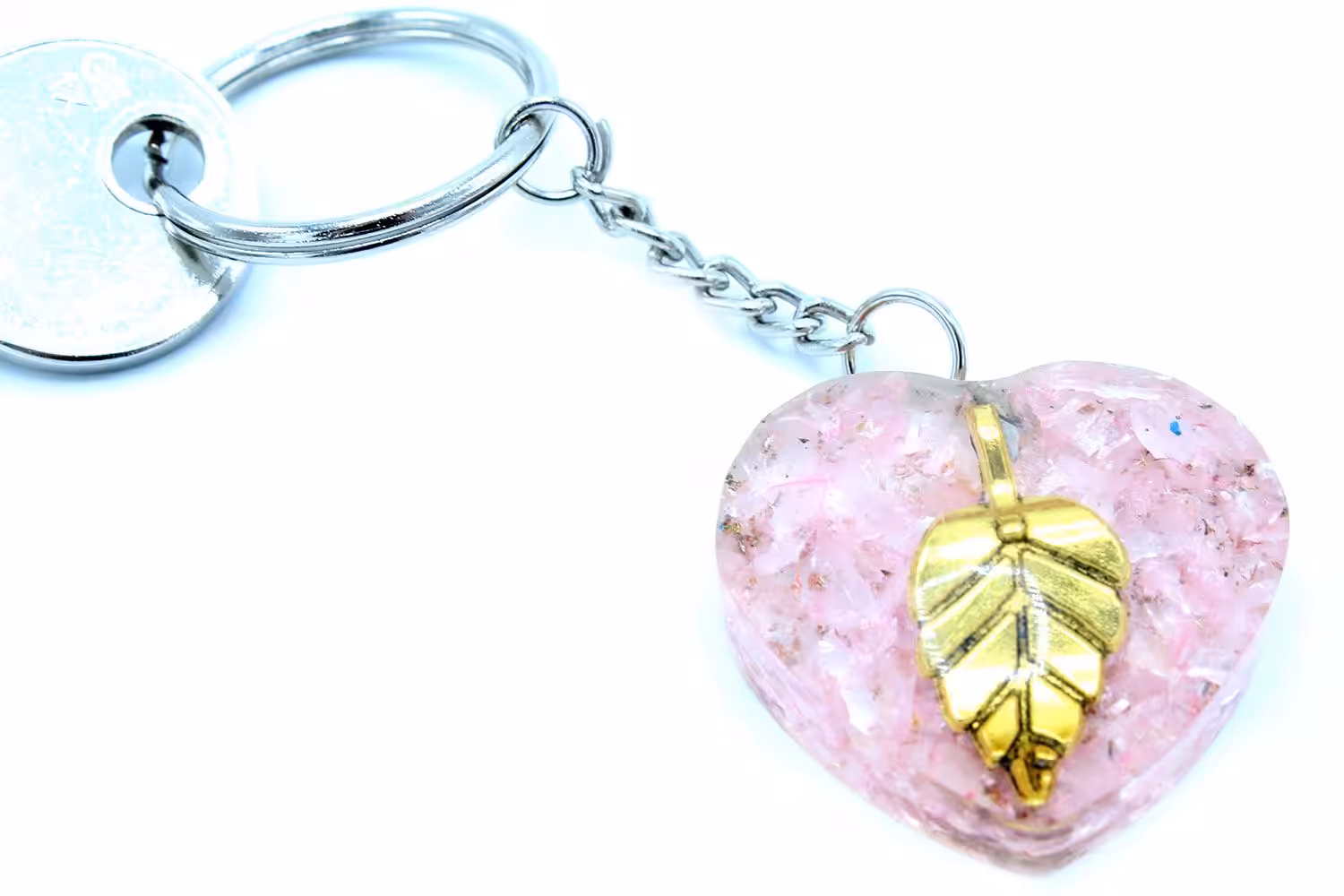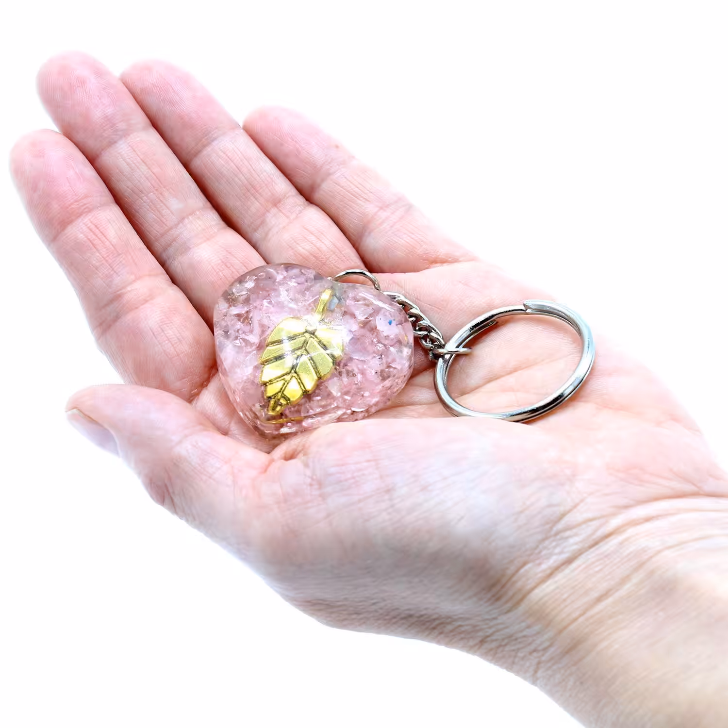 Orgonite Power Keyring – Rose Quartz Heearts Golden Leaf