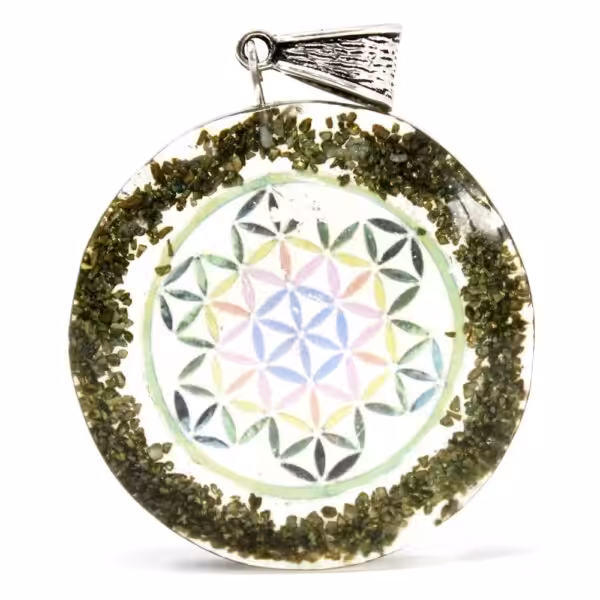 Wow, it doesn't get more magical or esoteric than this. Sometimes known as power flow objects these Orgonite pendants from Ancient Wisdom are made with gemstone chips, copper, metal filings and have esoteric objects inside. Orgonite has become very popular as a spiritual healing tooland as protection against electromagnetic pollution.