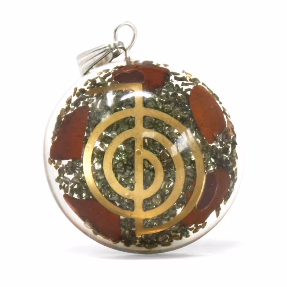 Wow, it doesn't get more magical or esoteric than this. Sometimes known as power flow objects these Orgonite pendants from Ancient Wisdom are made with gemstone chips, copper, metal filings and have esoteric objects inside. Orgonite has become very popular as a spiritual healing tooland as protection against electromagnetic pollution.