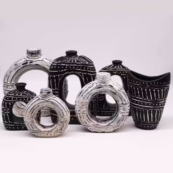 This ceramic masterpiece, meticulously handcrafted on the enchanting island of Lombok, exudes the perfect synergy of tradition and artistic craftsmanship, making it a striking addition to your interior decor. This vase becomes the centrepiece of any room, commanding attention with its distinctive oval donut shape. It's a unique masterpiece that captures the eye and ignites conversations.