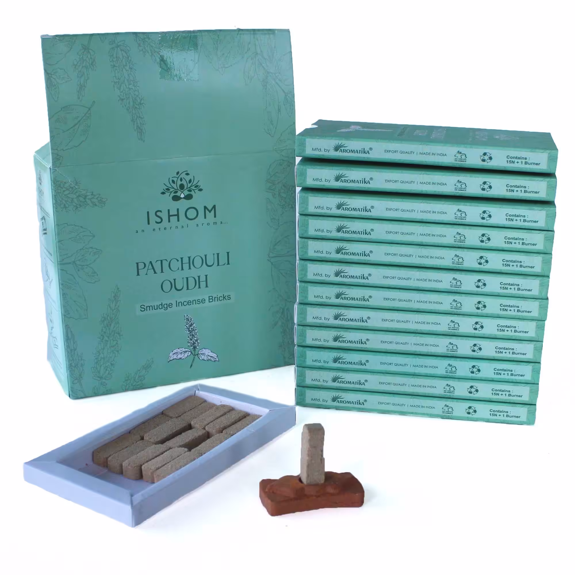 Transform your space with the earthy and alluring fragrance using our Pack of 15 Natural Incense Smudge Bricks and Burner – Patchouli Wood. This thoughtfully crafted package includes 15 premium incense bricks and an elegantly designed terracotta holder, providing a complete and convenient smudging experience.
