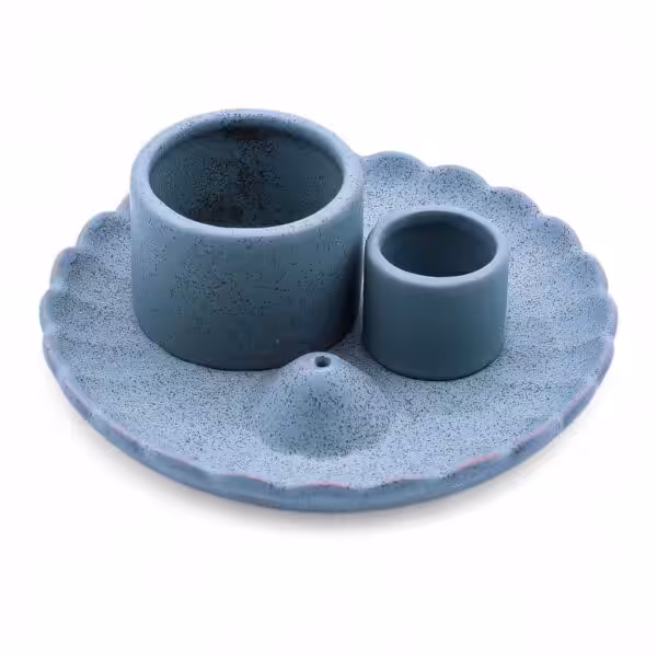 Crafted from high-quality ceramic, this smudge holder offers both durability and elegance. Its thoughtful design ensures that your Palo Santo sticks are securely held while allowing the aromatic smoke to disperse freely, creating a calming atmosphere. The vibrant blue colour adds a touch of vibrancy to your decor, making it a beautiful focal point in any room.