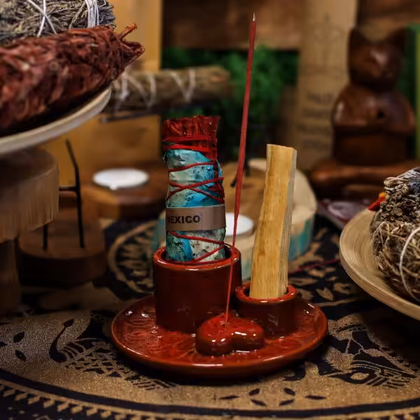 The Palo Santo Stick & Smudge Holder – Mandala – Red with Heart Gloss is an exquisite ceramic piece that beautifully complements your spiritual practices. Designed to hold your Palo Santo sticks securely, this holder not only serves a functional purpose but also adds an artistic touch to your space, making it a perfect addition to your meditation or cleansing rituals.