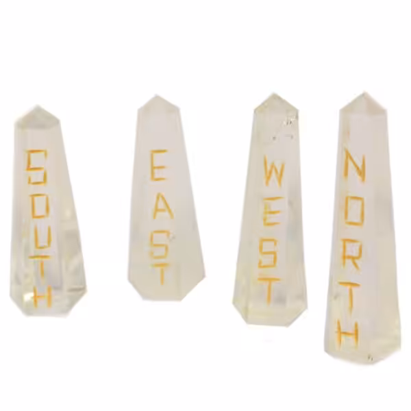 This Compass Set from Ancient Wisdom includes 4 larges long pieces of Quartz which have the 4 Compass directions engraved on them (North, South, West, East).