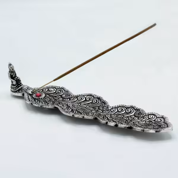 Crafted with care, this incense holder boasts a sleek polished finish that complements its artistic design, making it both functional and visually appealing. The long holder is designed to catch ash efficiently, ensuring a clean and safe burning experience. Its durable aluminium construction ensures longevity, while its lightweight nature makes it easy to move around or reposition as needed.