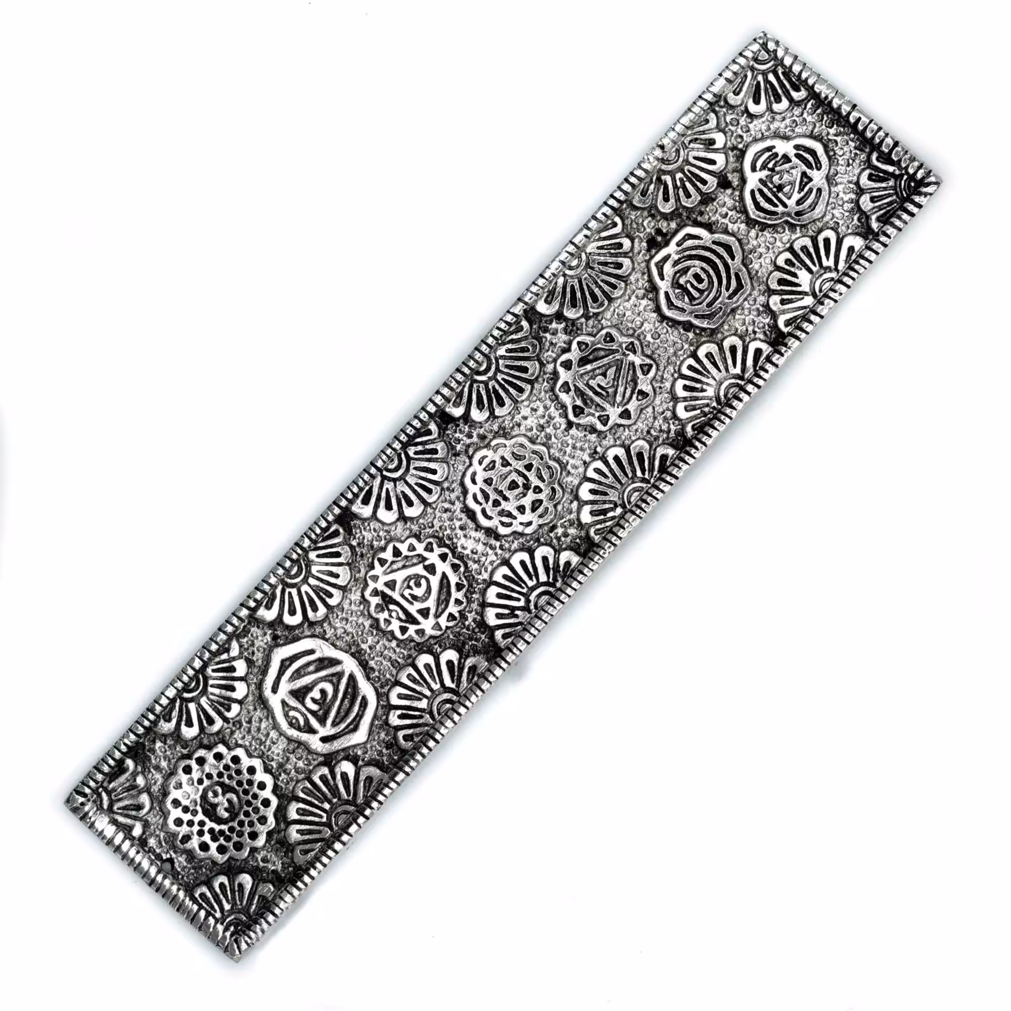 Unite beauty and balance with this captivating Chakra Long Incense Holder. Designed with a long, slender body (approximately 23cm long) ideal for stick incense, this holder boasts a vibrant floral design that blossoms with the symbols representing the seven chakras.