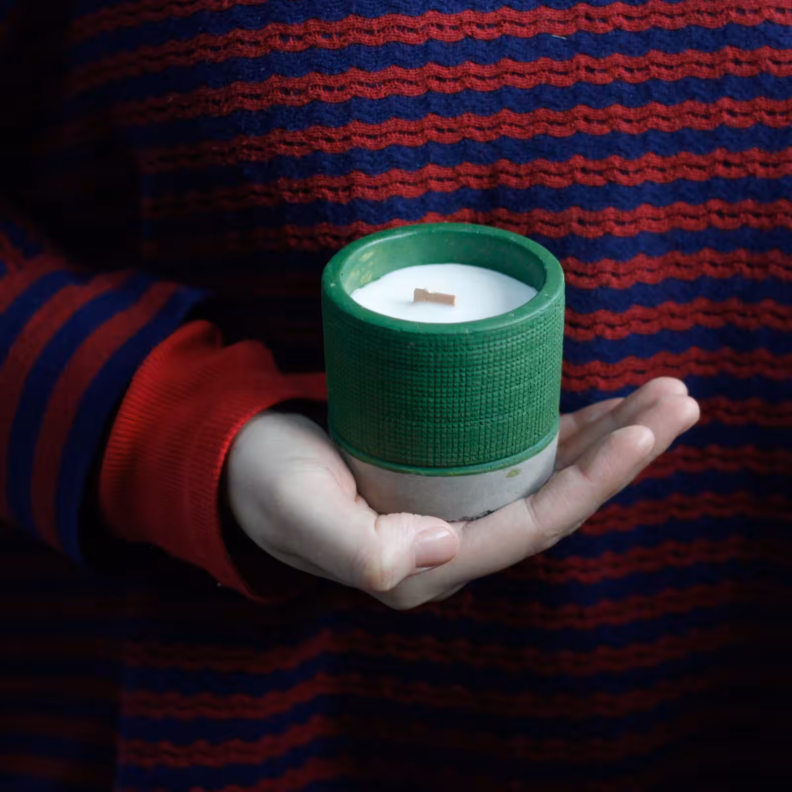 Felt pads have been added to the bottom to prevent the scratching of surfaces. The natural wooden wick creates the soothing sound of a crackling fire! The design of the concrete pot allows reusing it to integrate it into your decor once the candle is consumed such as a plant pot.