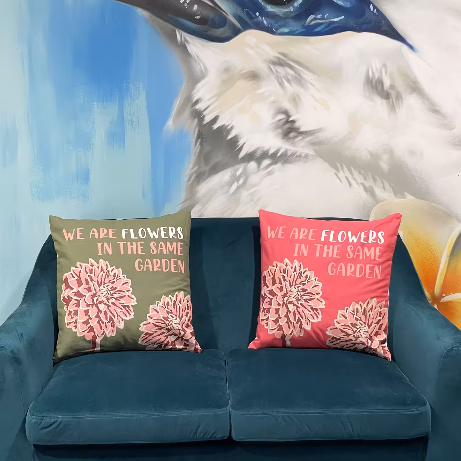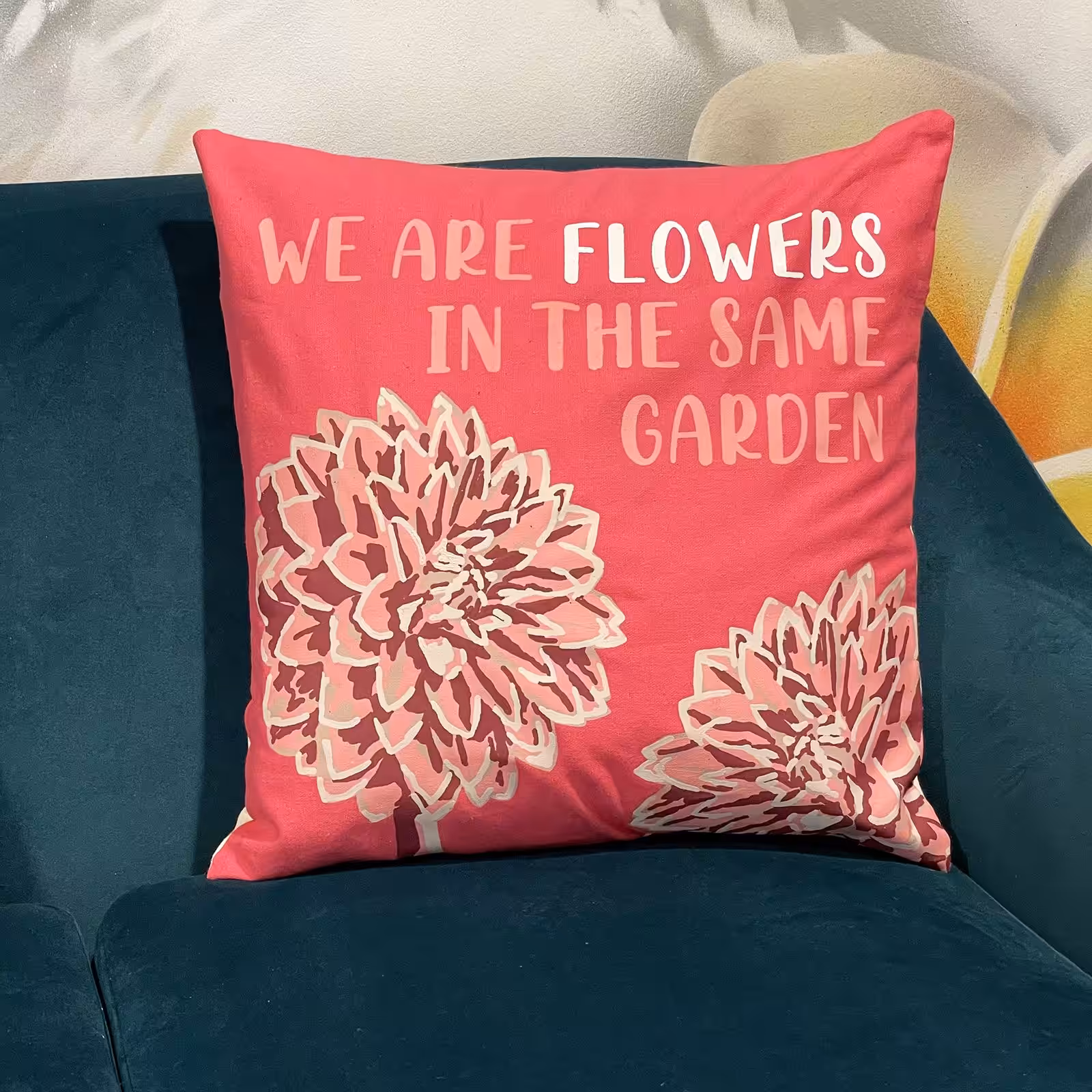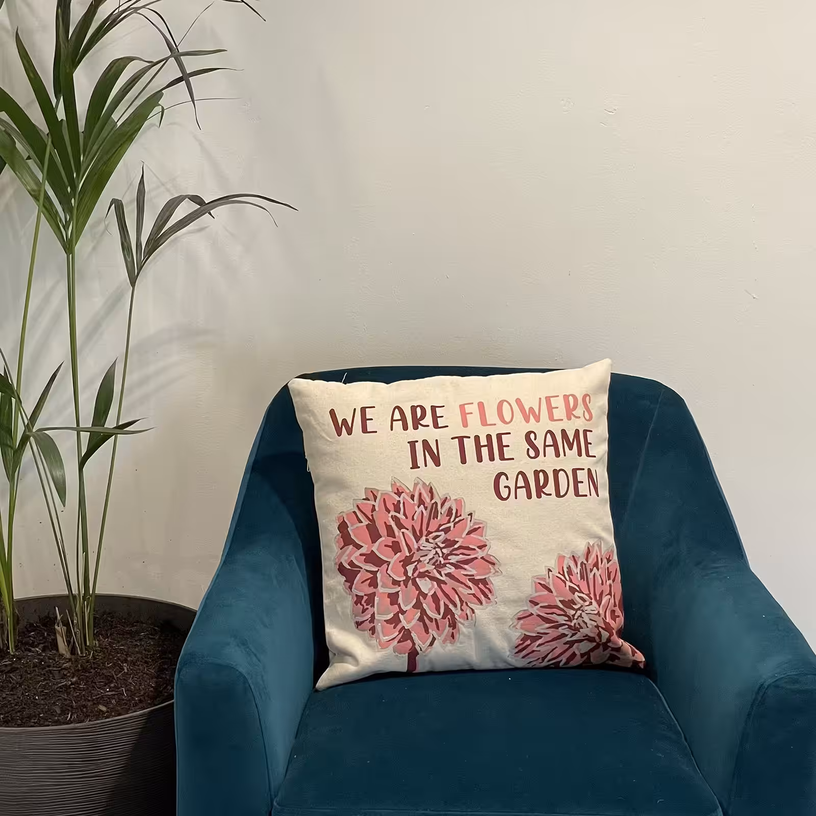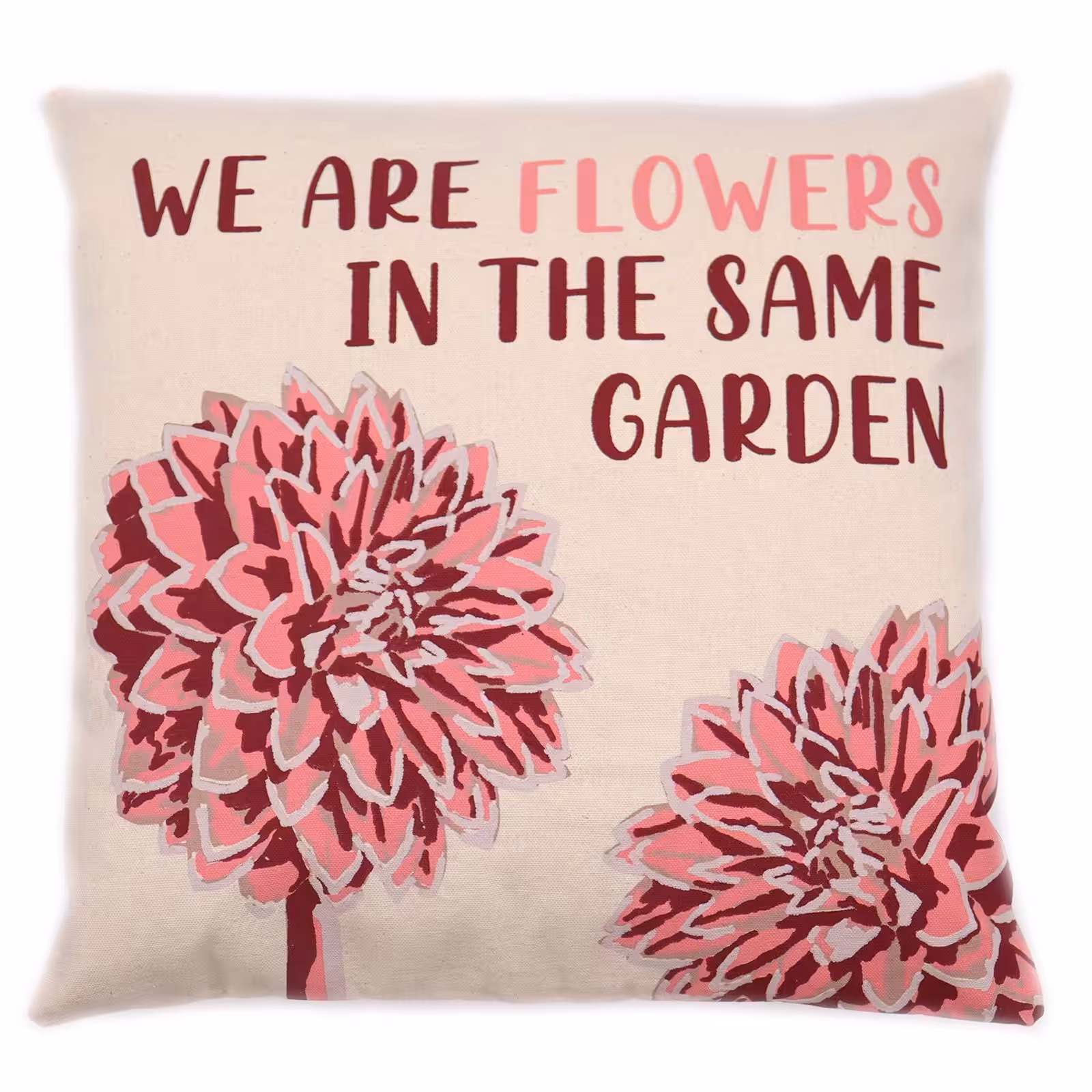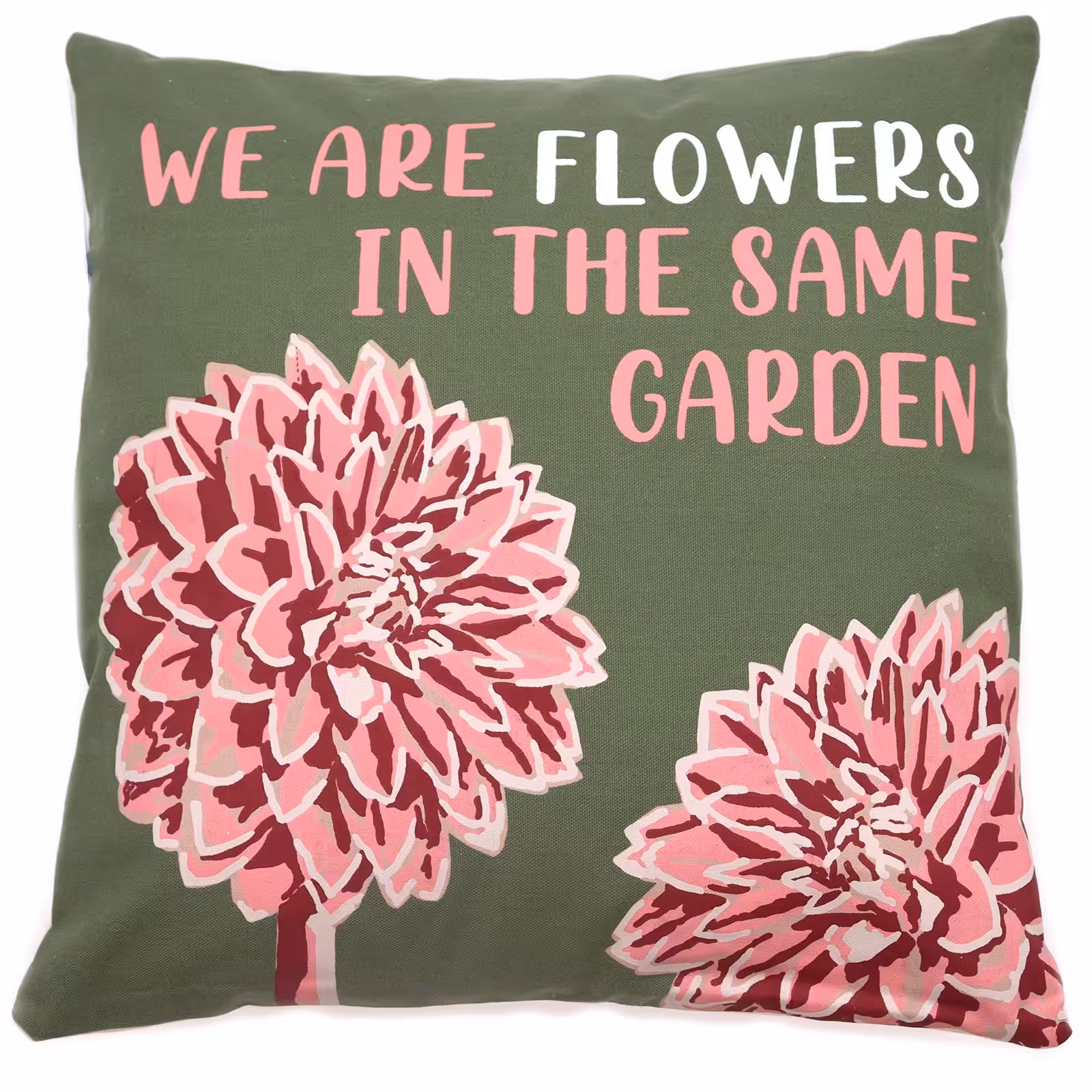 Printed Cotton Cushion Cover – We are Flowers – Olive, Pink and Natural