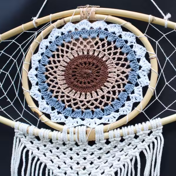 This dream catcher is hand made with macrame details and natural rattan frames. A beautifully crafted product in vibrant designs you will love.