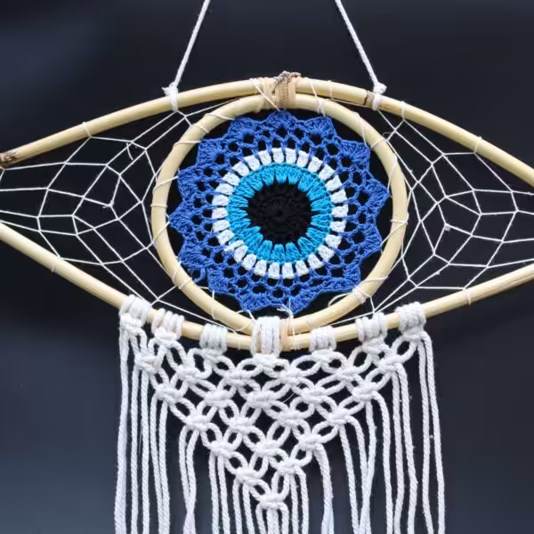 In many ancient cultures the Evil Eye is a symbol of protection against evil. This combination of Dream Catcher and Evil Eye invokes the magic of both.