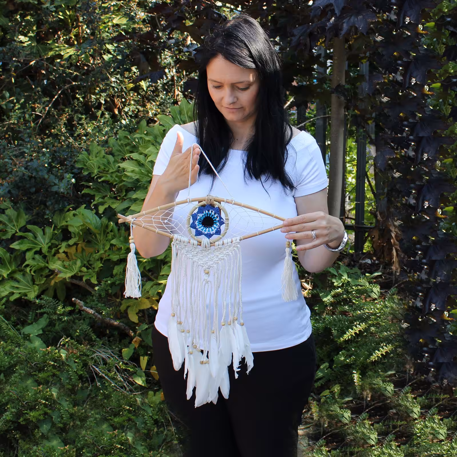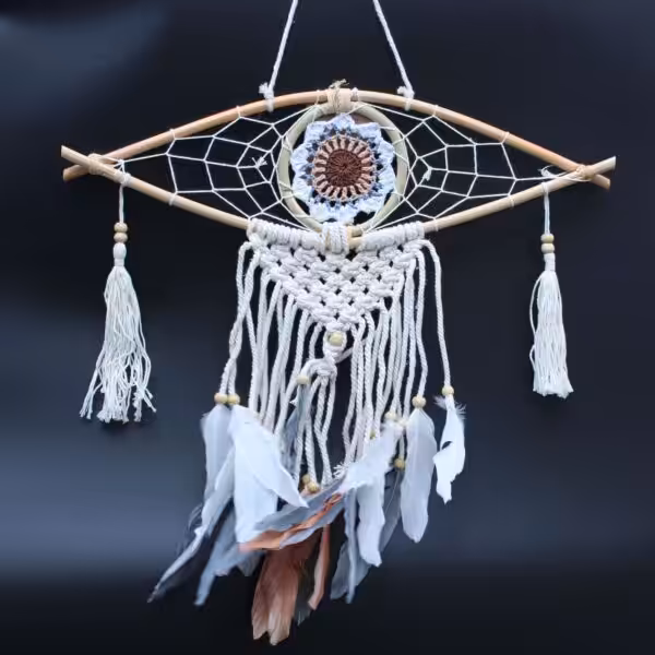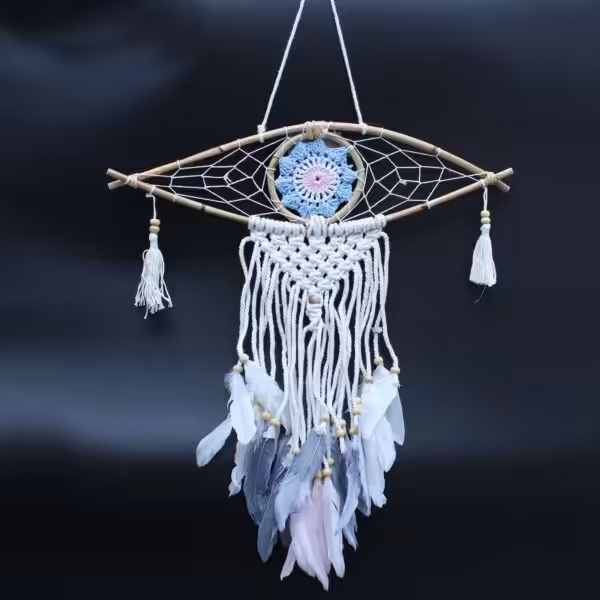 In many ancient cultures the Evil Eye is a symbol of protection against evil. This combination of Dream Catcher and Evil Eye invokes the magic of both.