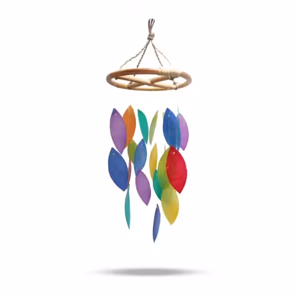The Rainbow Leaf & Bamboo Drop is a stunning addition to any outdoor space, ideal for those seeking a unique driftwood chime that harmonises with nature. Crafted from natural materials, this chime features vibrant rainbow leaves delicately suspended from bamboo, creating a visual and auditory masterpiece that adds charm to gardens, patios or balconies.