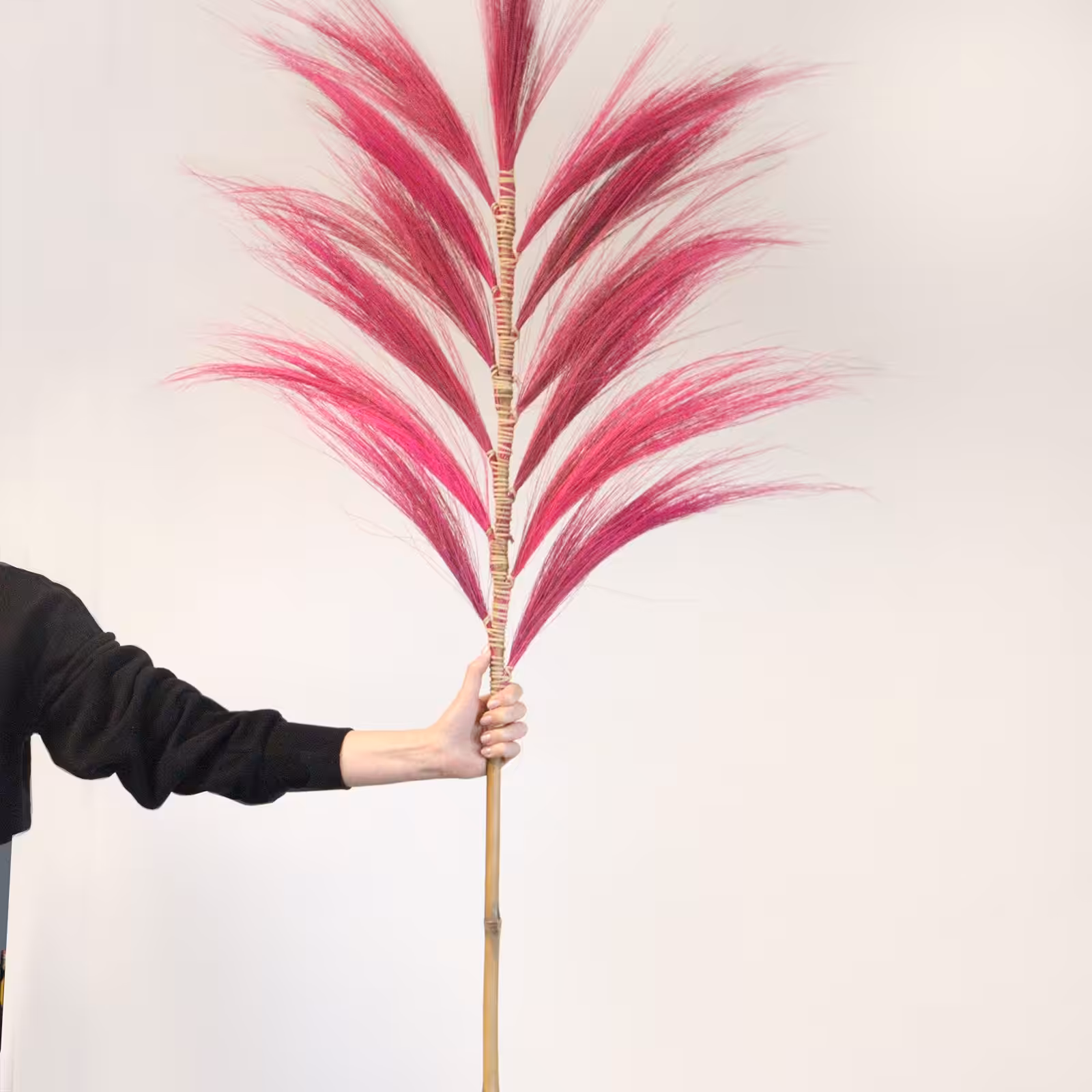 Get the exotic tropical look in your shop with these Rayung Pampas Displays. Dried, exotic Rayung Grass dyed in a variety of colours, braided on a vertical bamboo sticks, is an original  and undemanding interior decoration. These elongated fluffy stems will sit effortlessly in any setting.