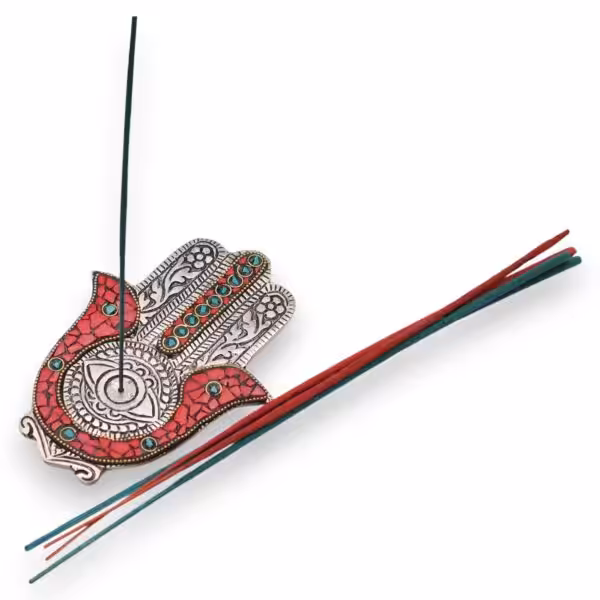 The Red & Green Small Hamsa Incense Holder is a stunning addition to any meditation or relaxation space, expertly crafted from durable aluminium. Its intricate design features the Hamsa symbol, which is known to bring protection and good fortune, making it not just a decorative piece but also a meaningful one. This handcrafted incense holder fits seamlessly into the category of Handcrafted Aluminium Incense Holders, showcasing both artistry and functionality.