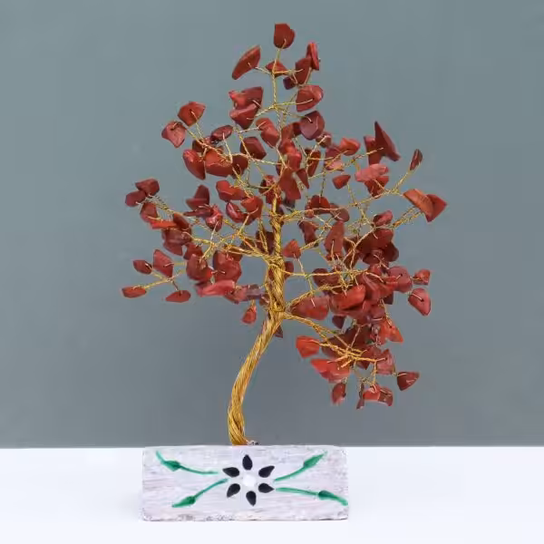 This Indian Gemstone Trees from Ancient Wisdom is handmade from real gemstones and mounted on gemstone rock bases.